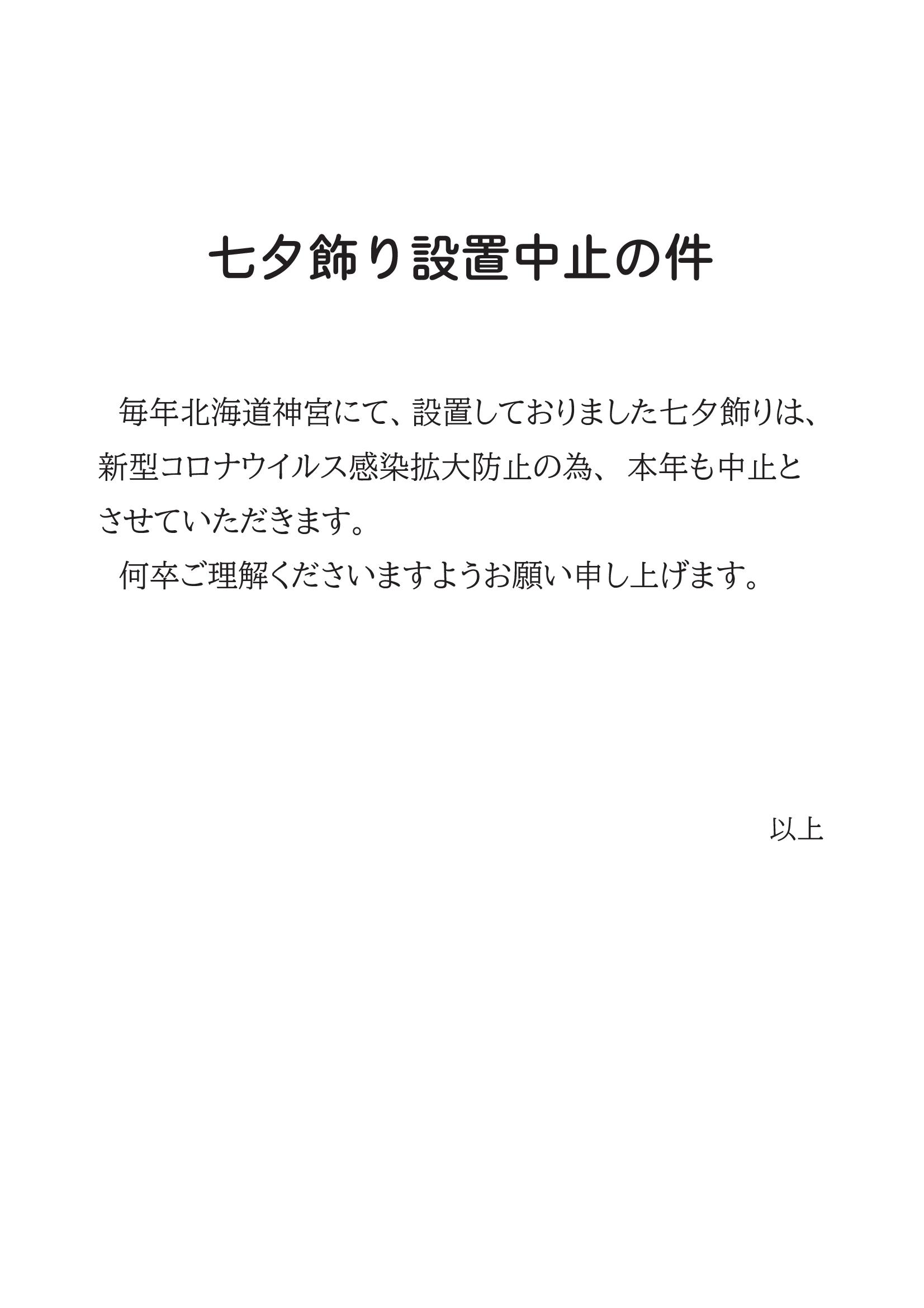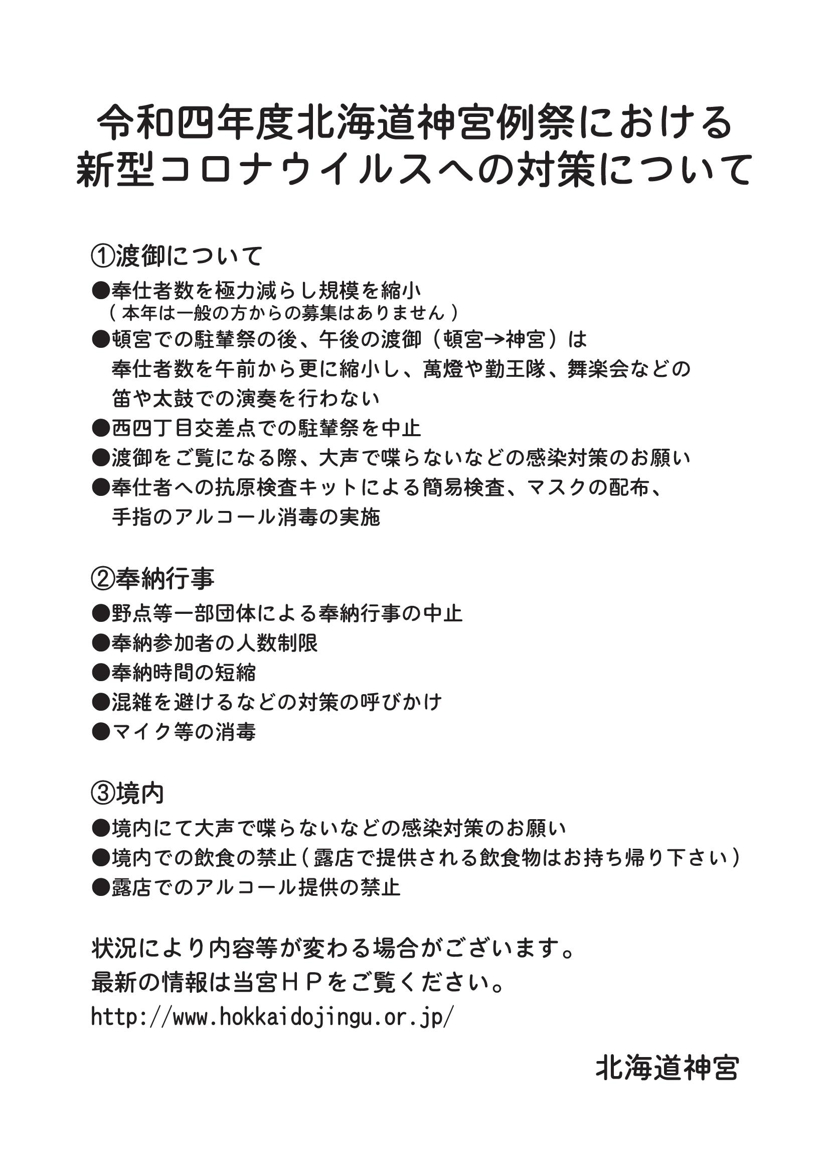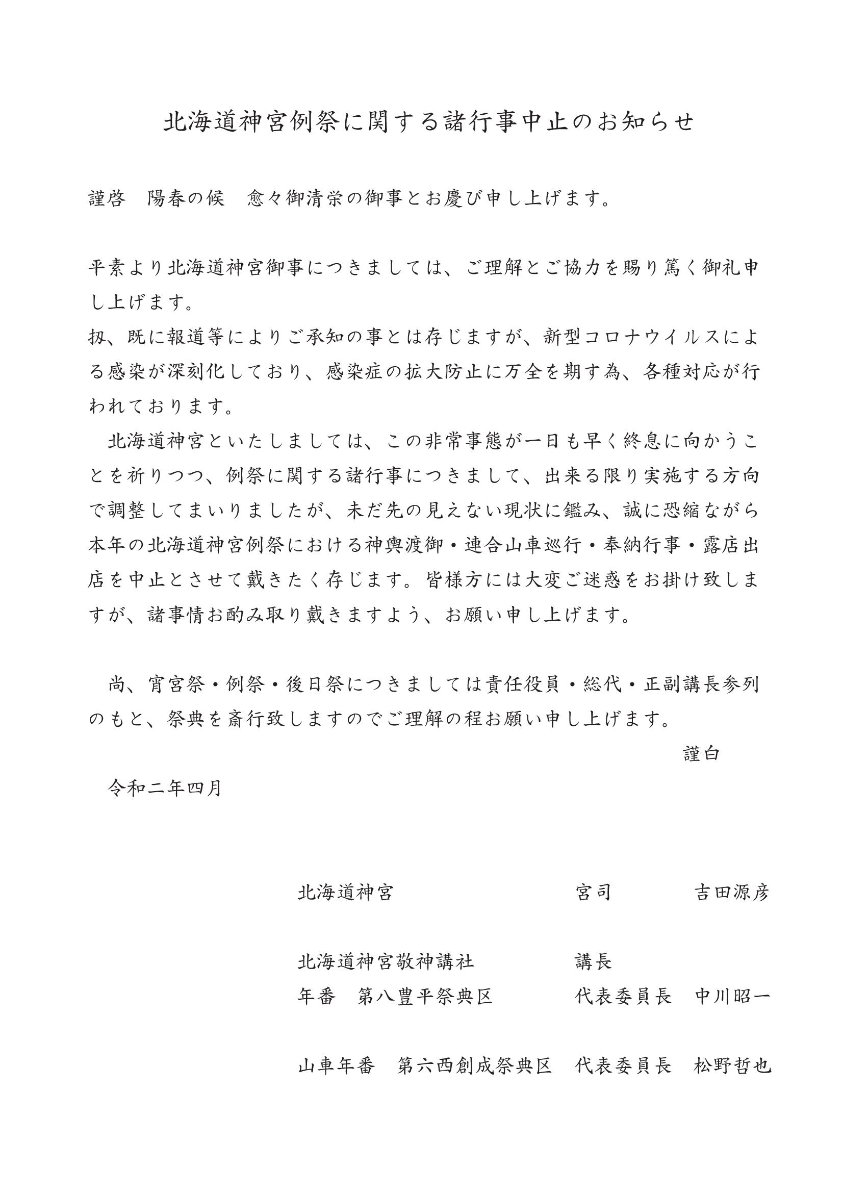 - 北海道神宮例祭に関する諸行事中止のお知らせ