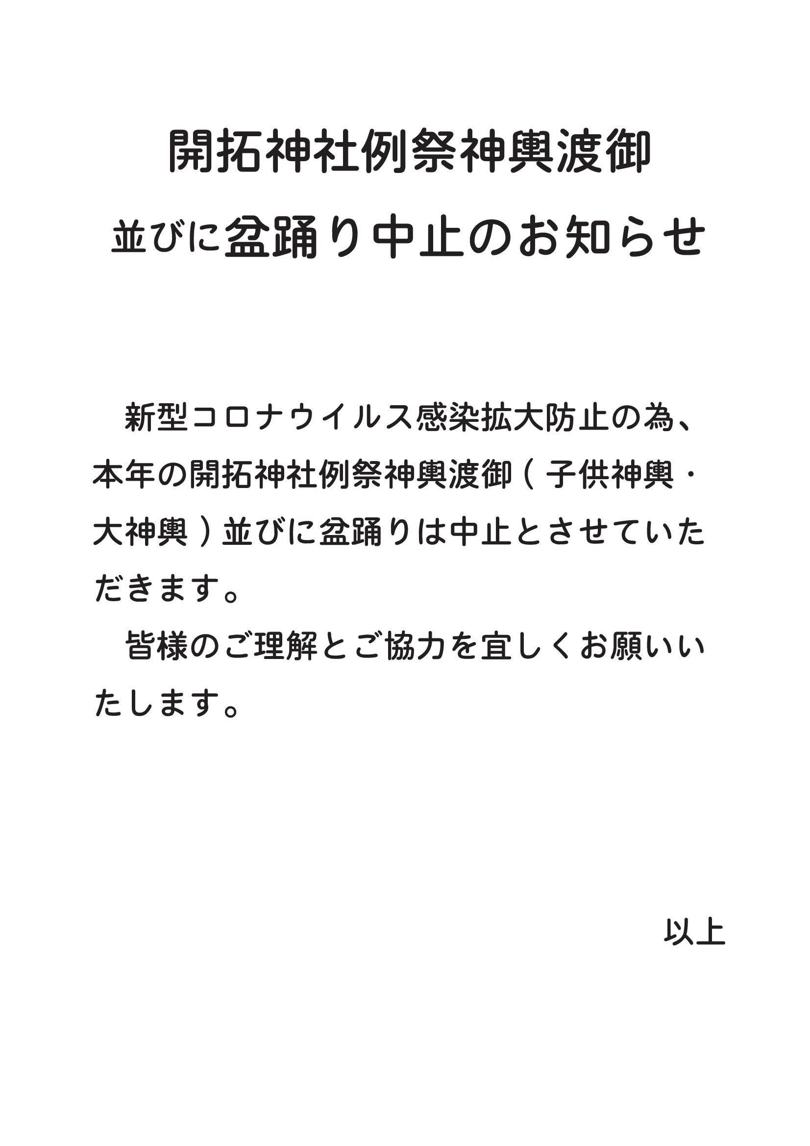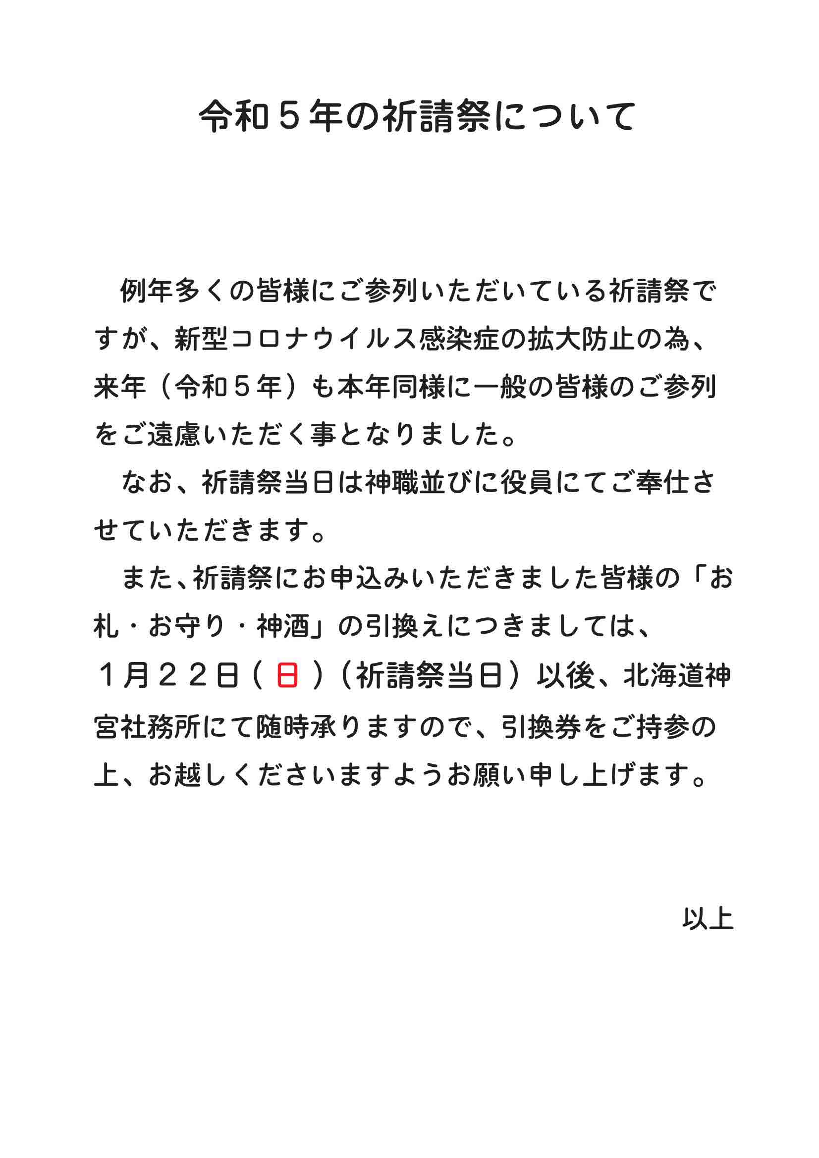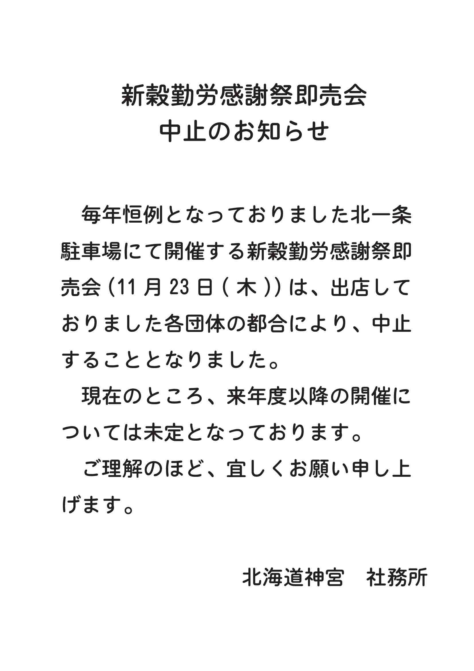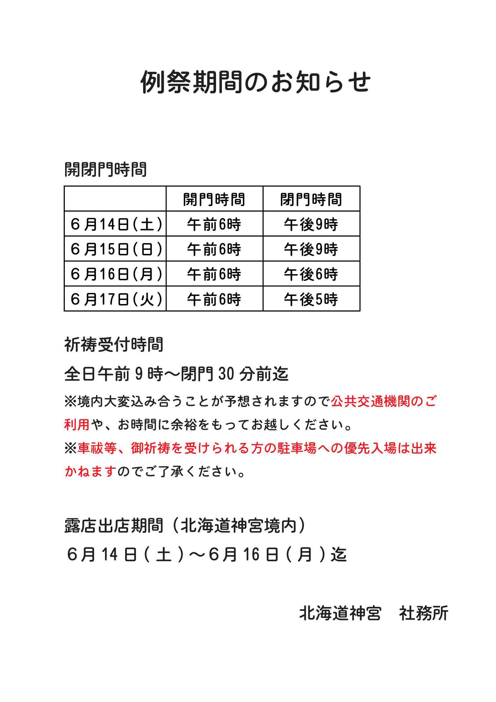 - 北海道神宮例祭に関する諸行事中止のお知らせ