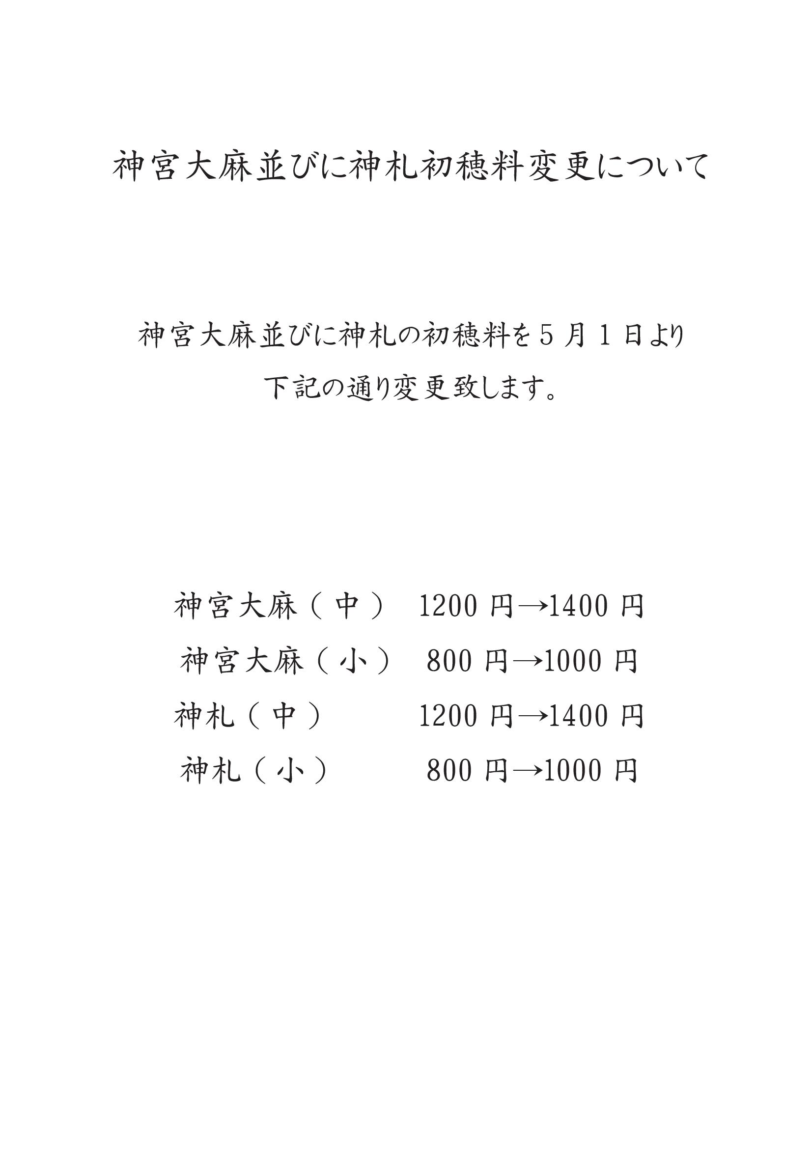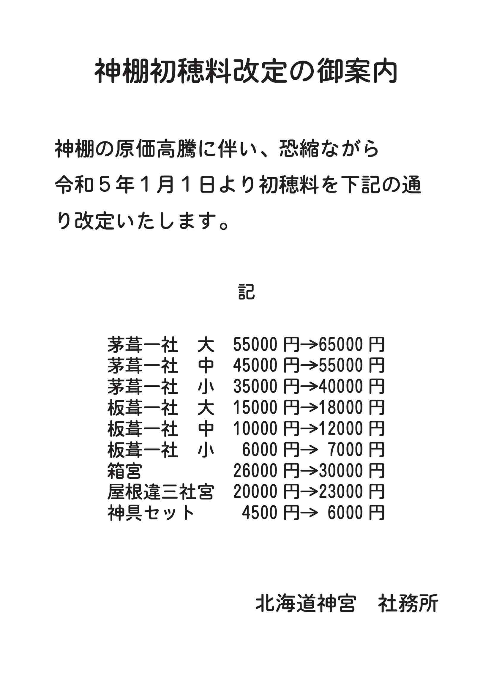 - 令和4年12月26日神棚初穂料改定のご案内(1/1-)