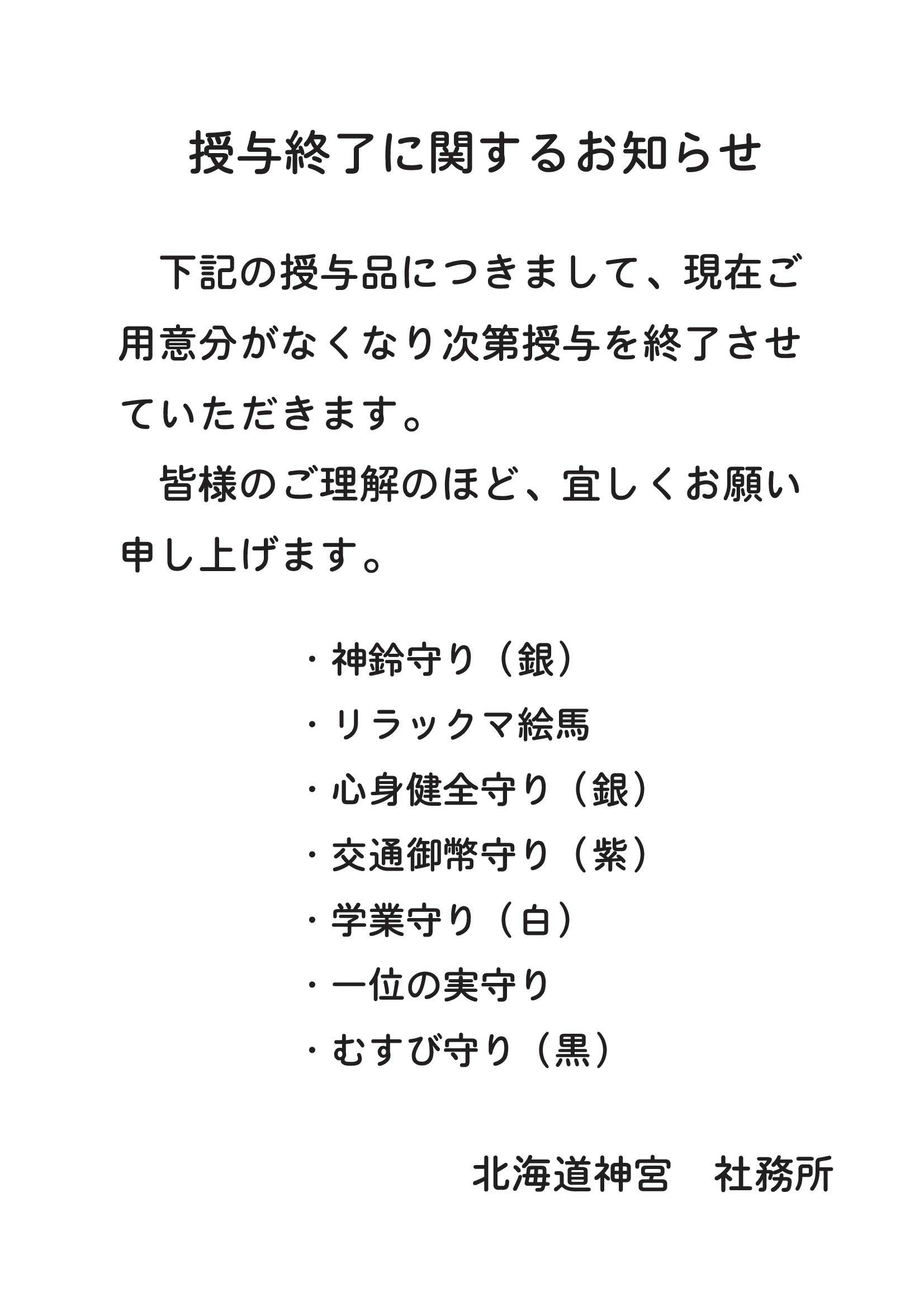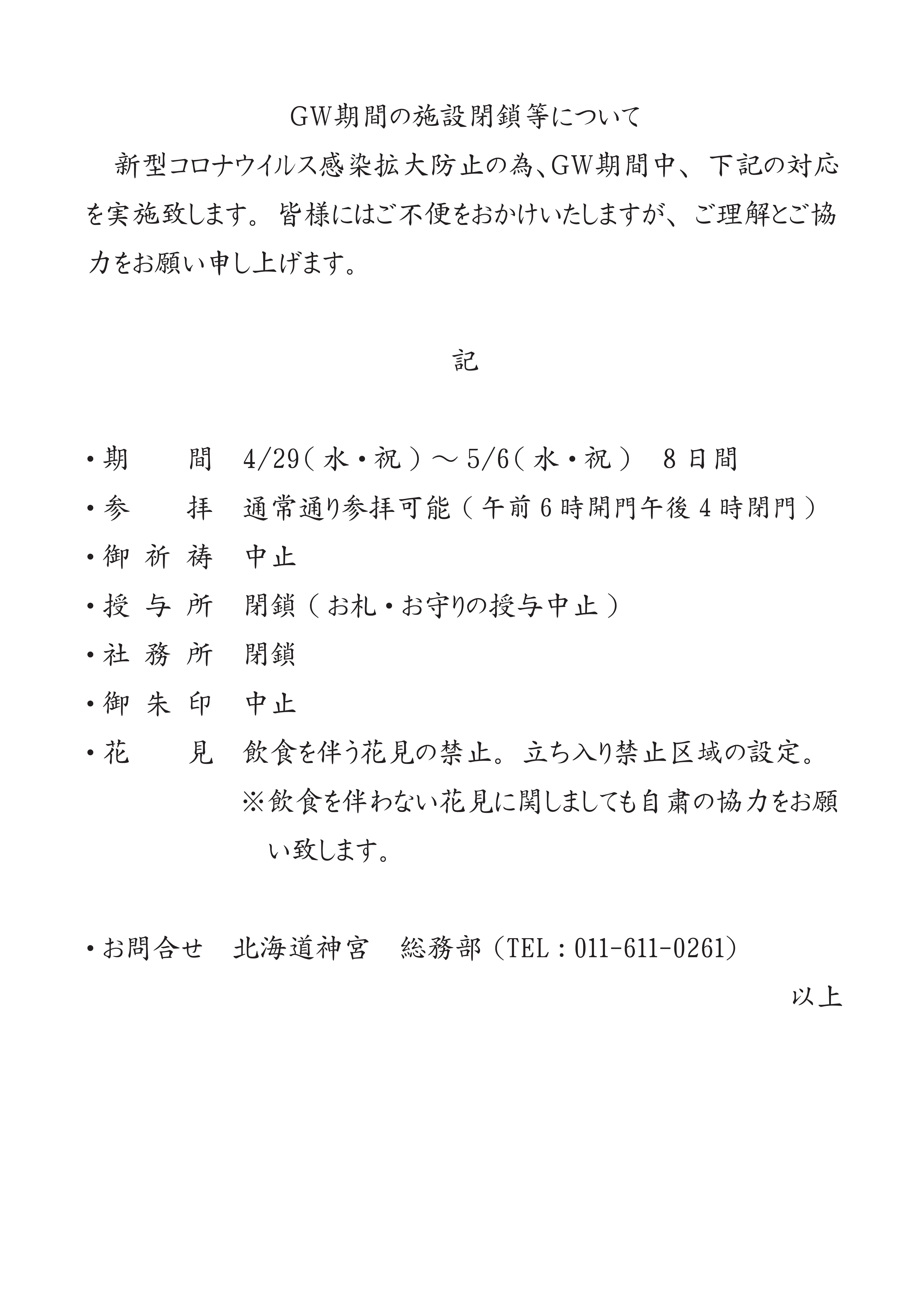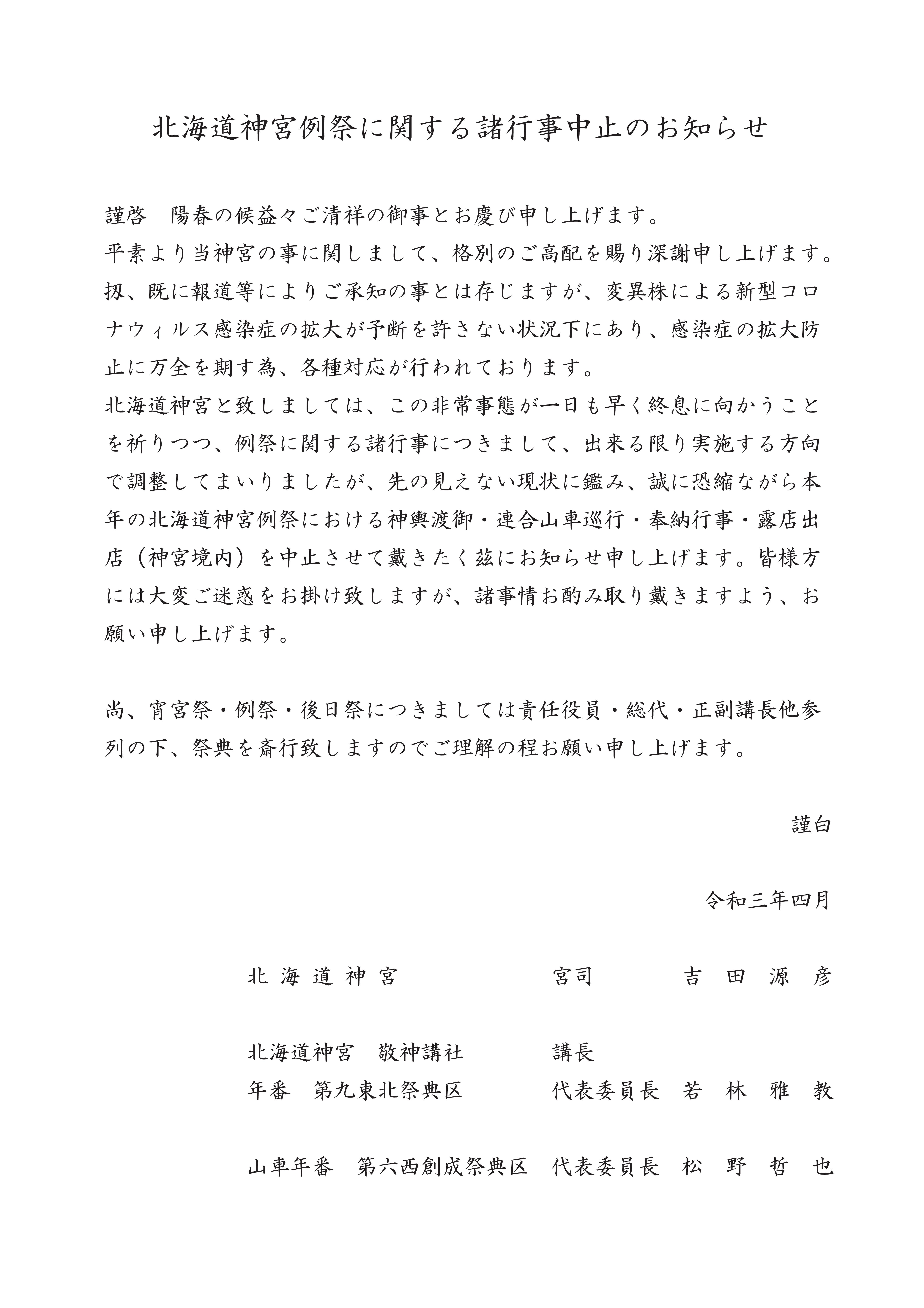 - 令和3年4月7日北海道神宮例祭に関する諸行事中止のお知らせ