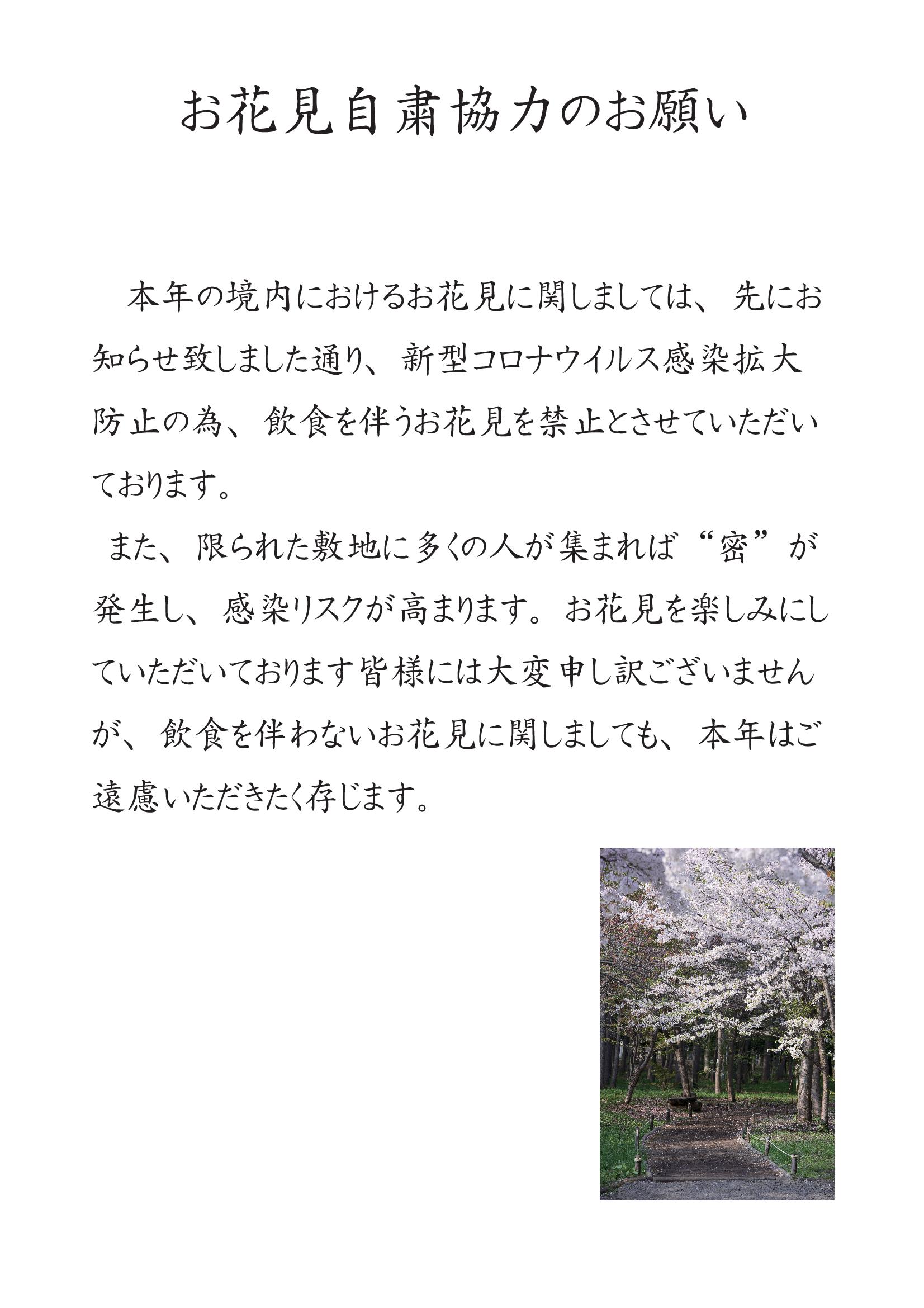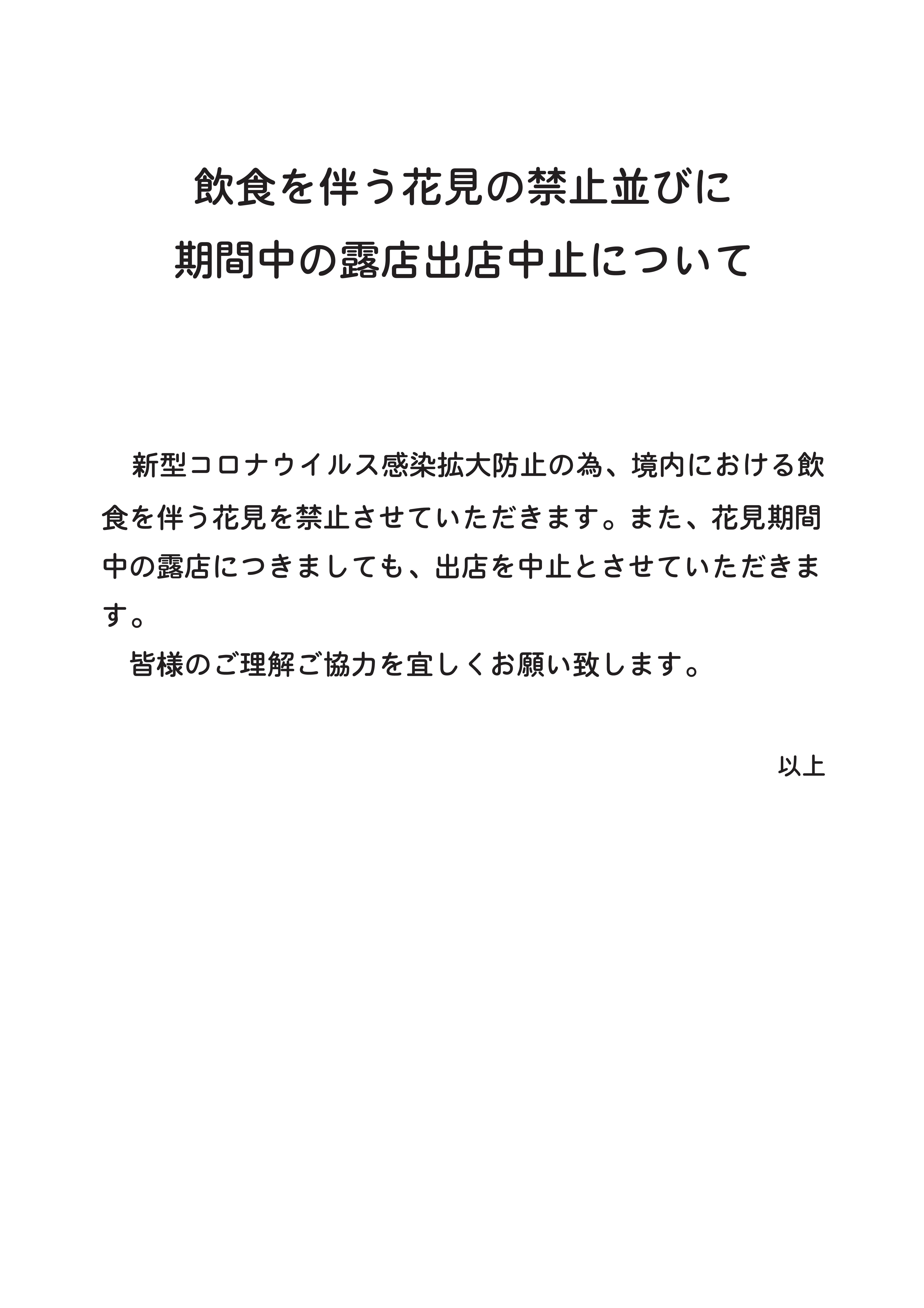 - 令和3年4月7日飲食を伴う花見の禁止並びに期間中の露店出店中止について