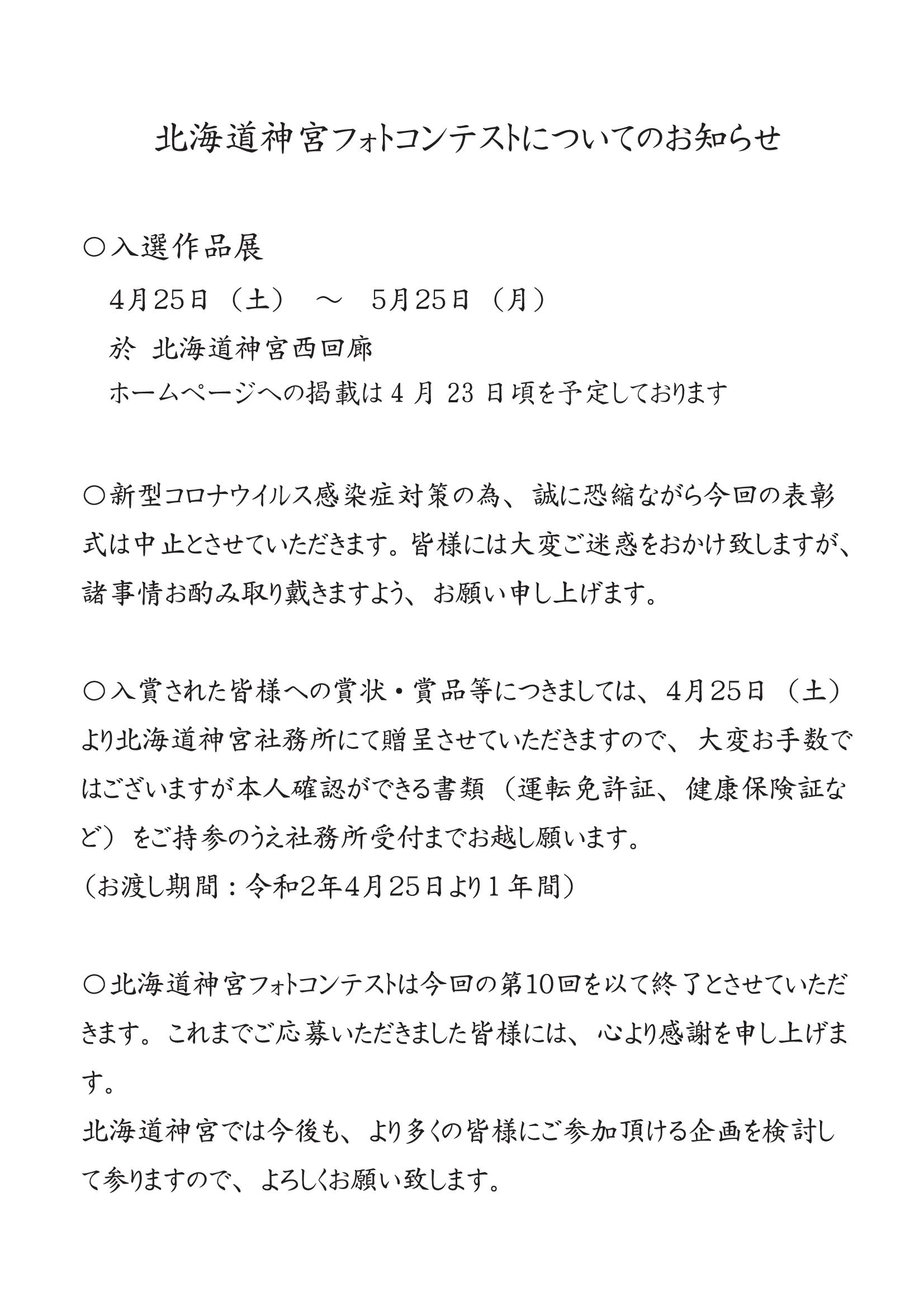 - 北海道神宮 第10回フォトコンテスト審査発表