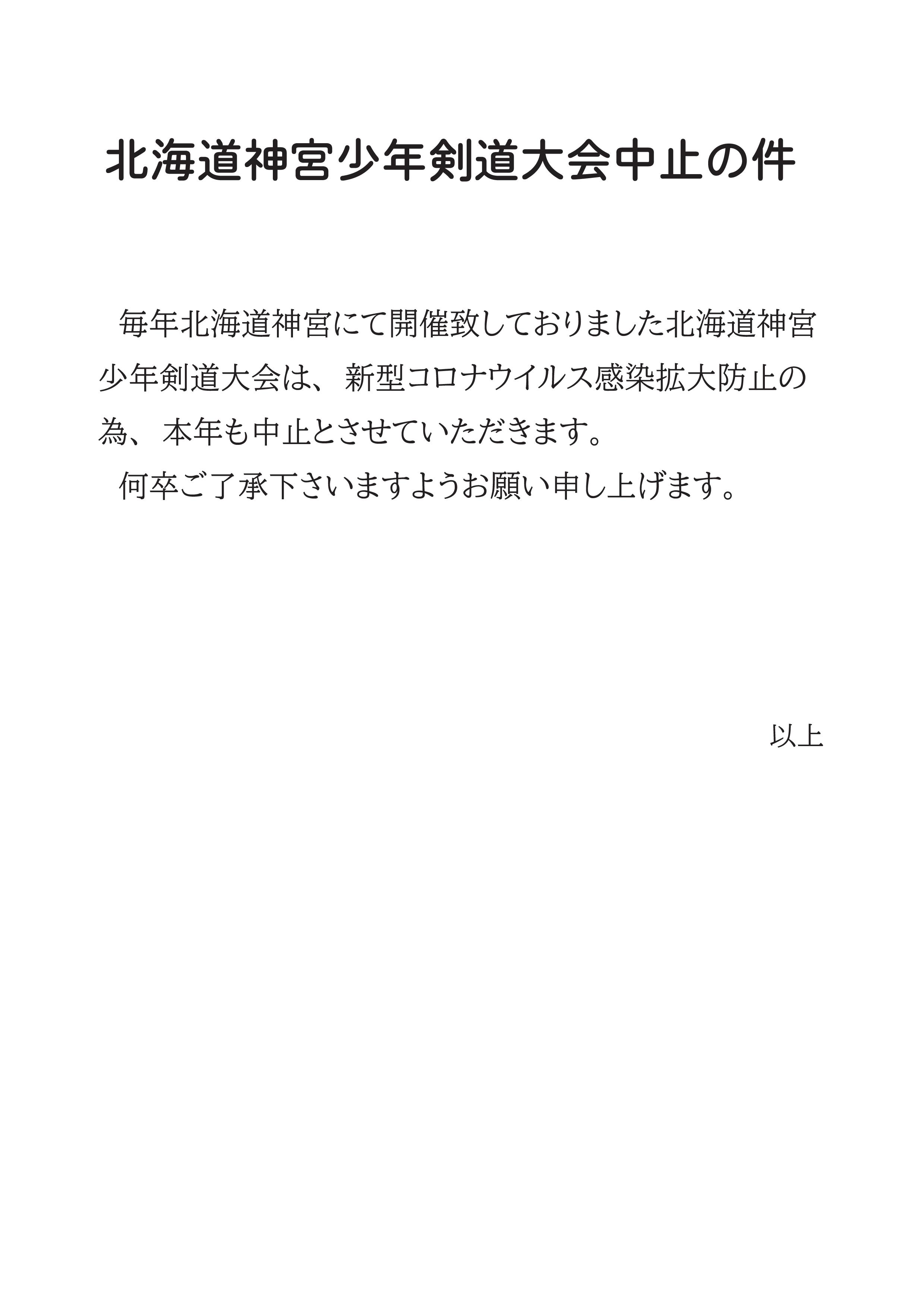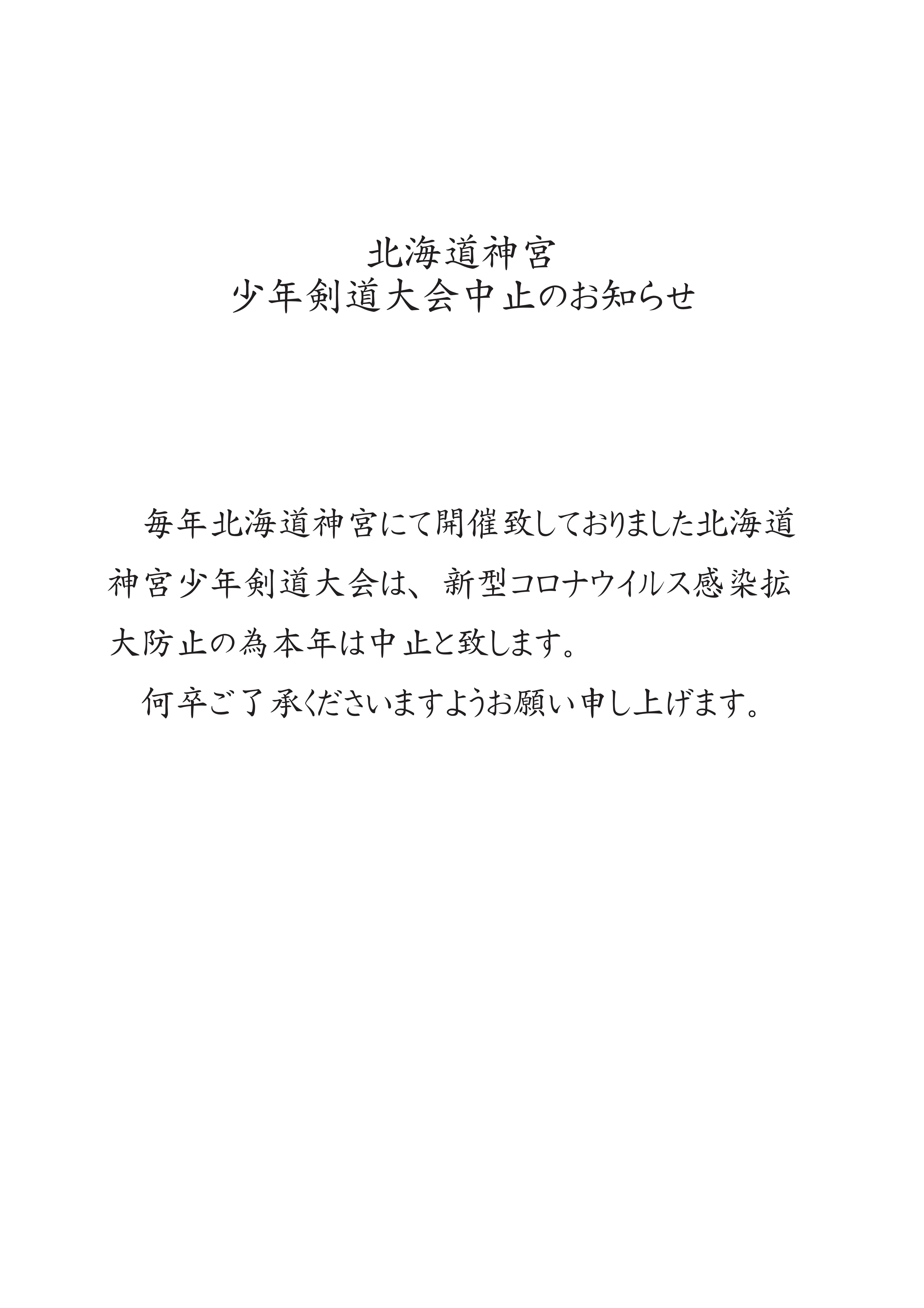 - 令和2年7月15日北海道神宮少年剣道大会中止のお知らせ