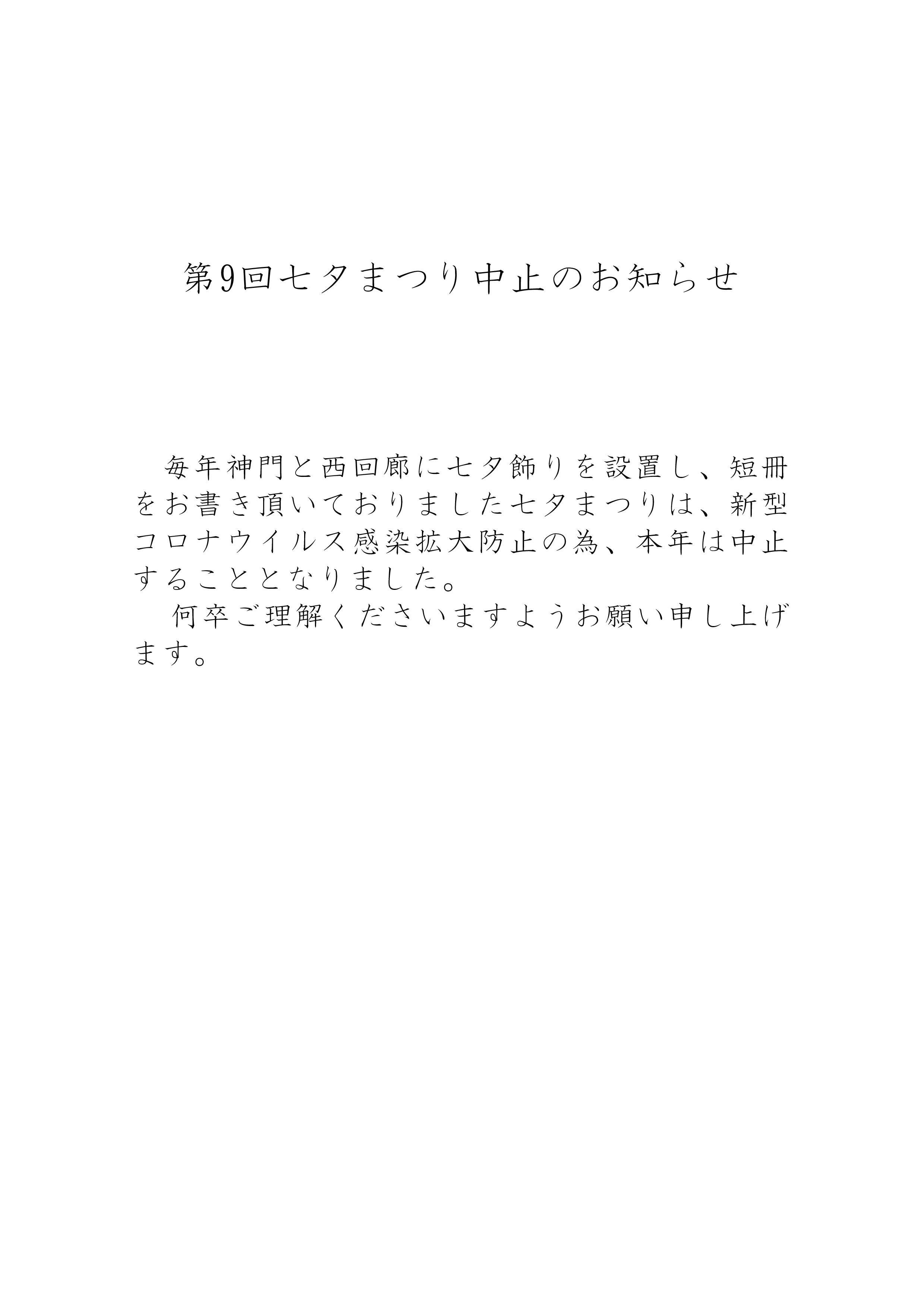 - 令和2年7月27日第9回七夕まつり中止のお知らせ