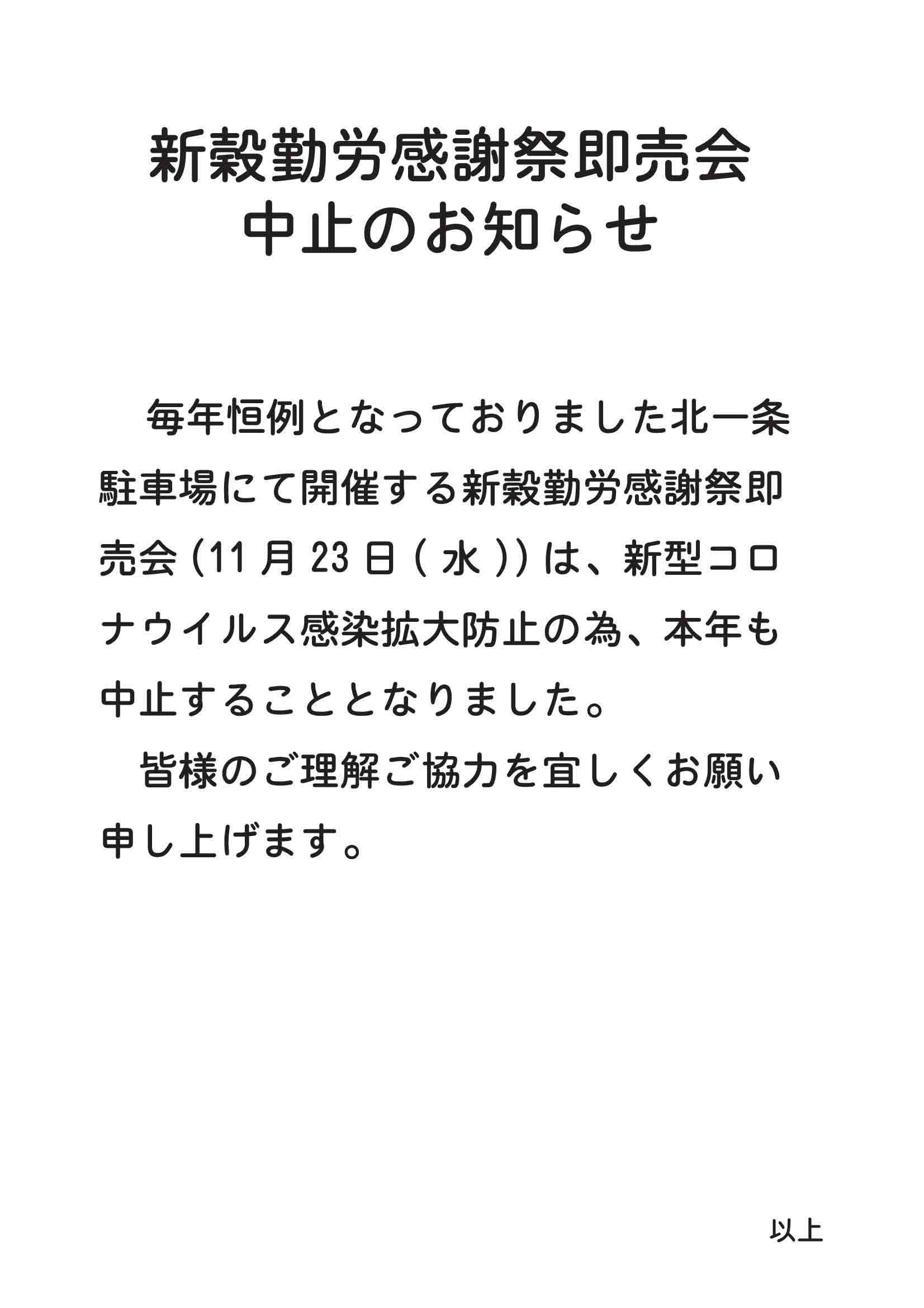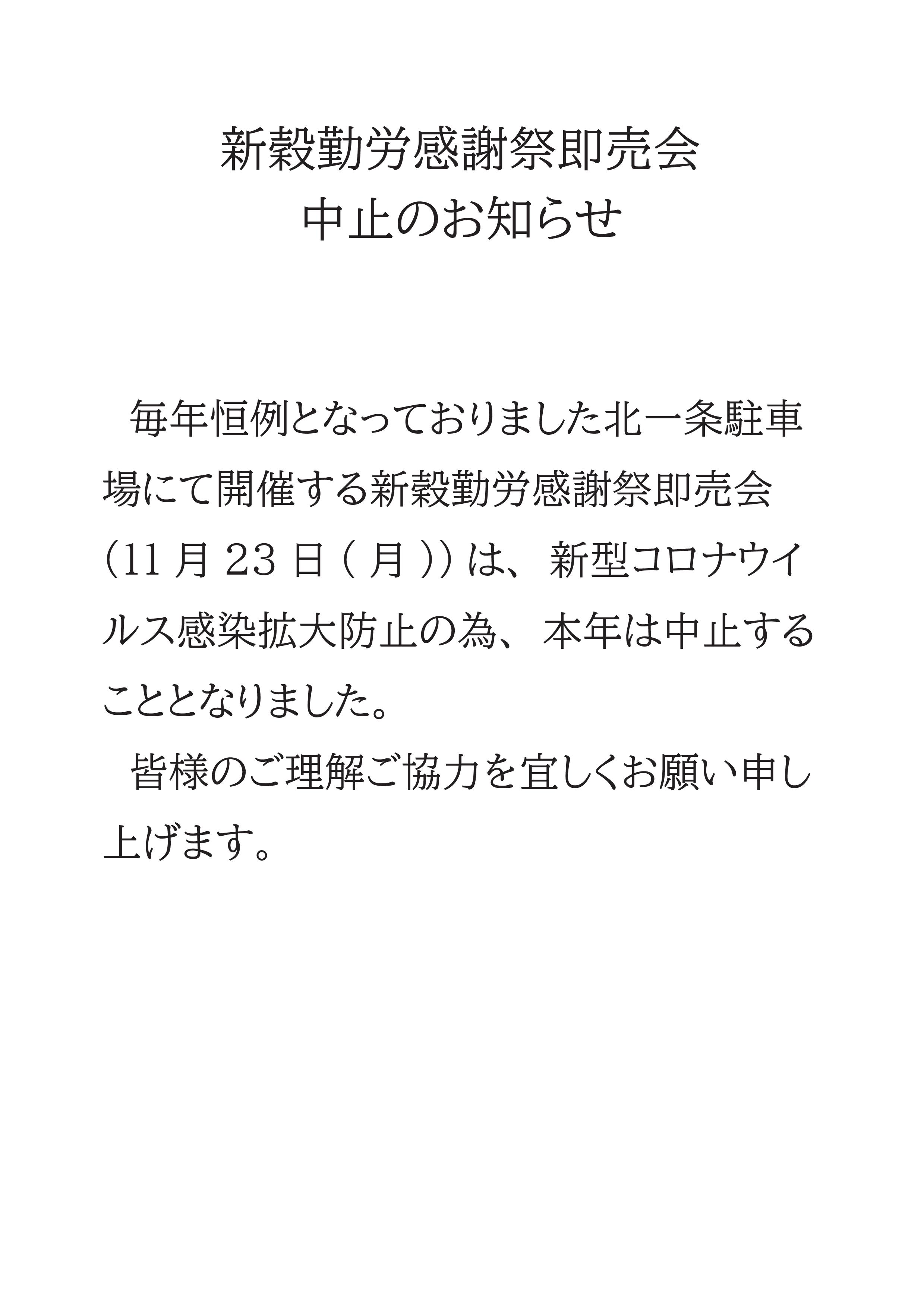 - 令和3年11月1日新穀勤労感謝祭即売会【11/23(火)】中止のお知らせ