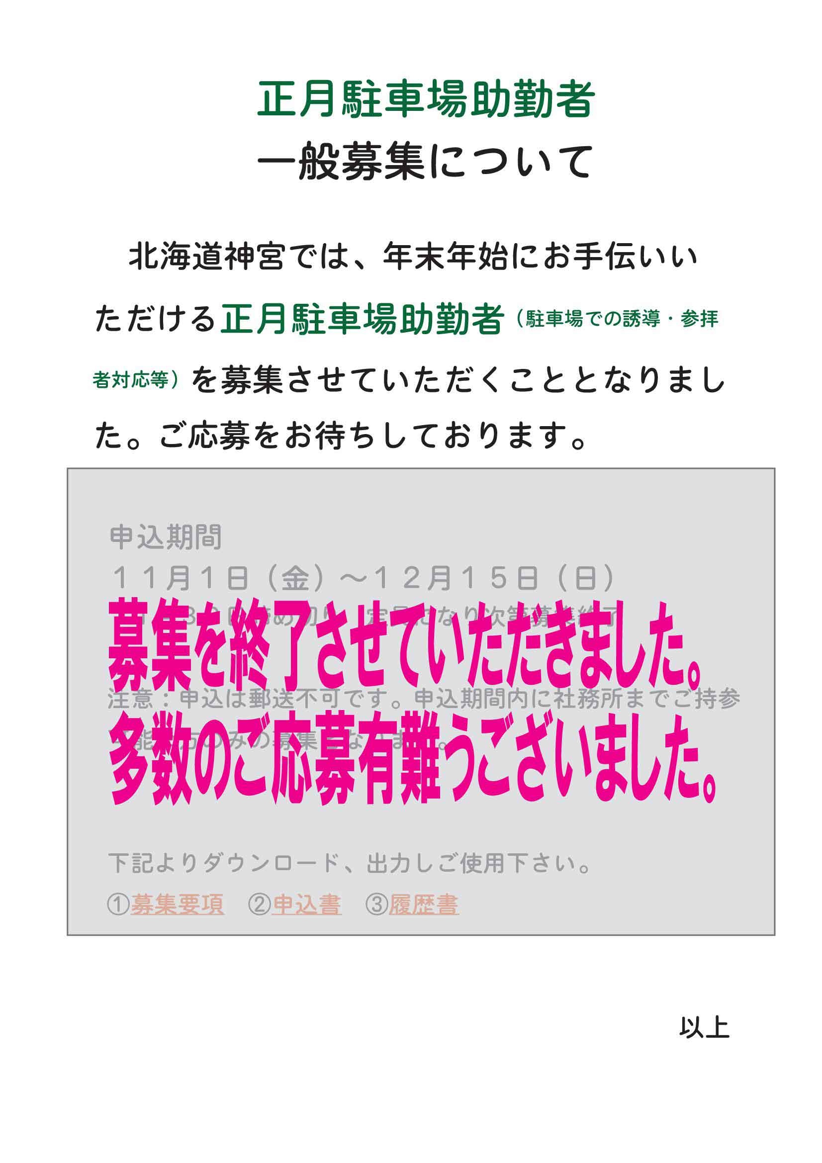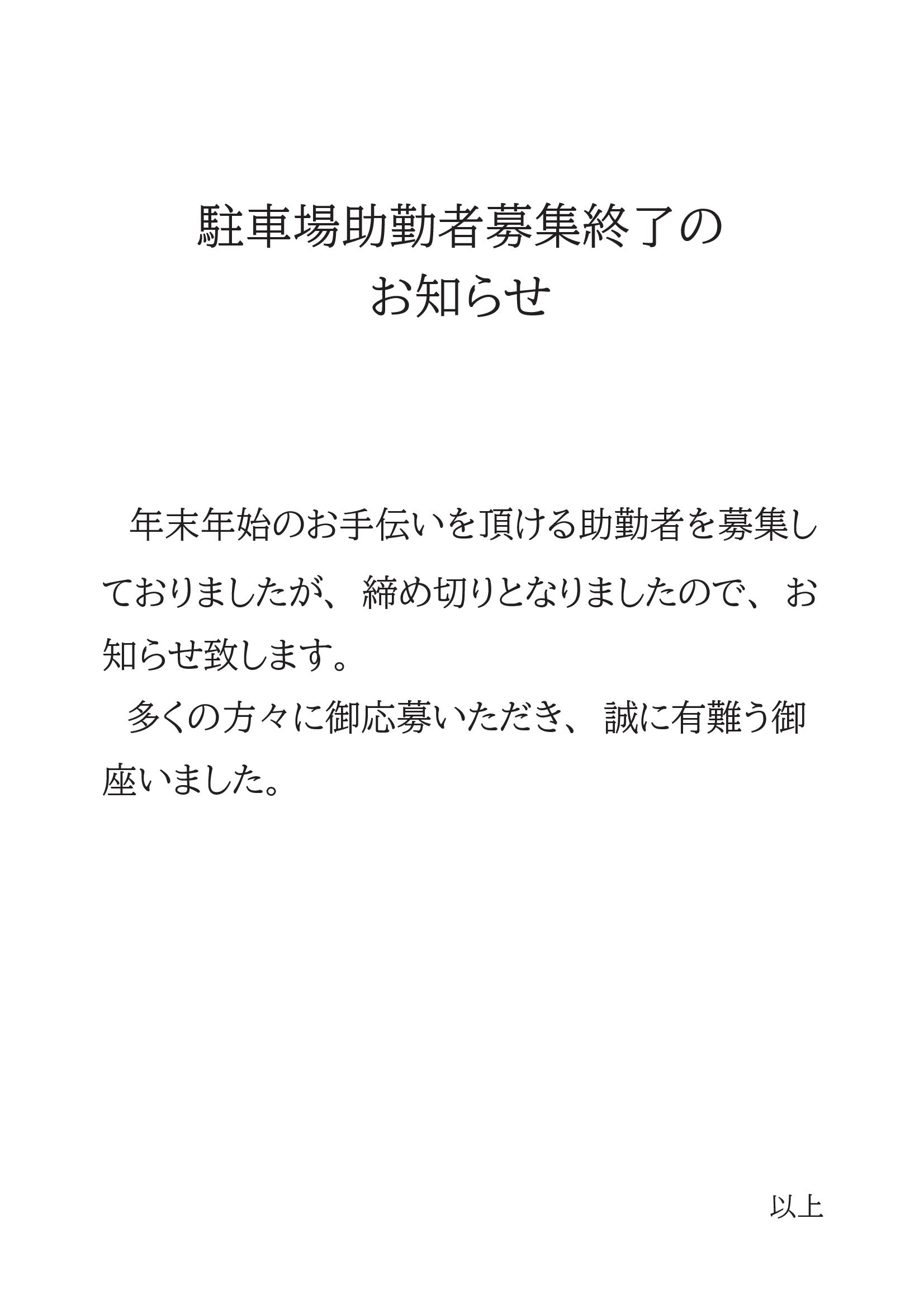 - 令和2年12月14日正月駐車場助勤者一般募集について【募集終了】