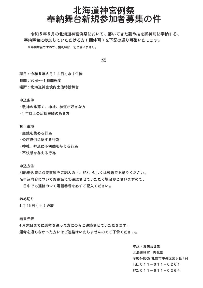 - 令和5年3月31日北海道神宮例祭 奉納舞台新規参加者募集の件【募集終了】