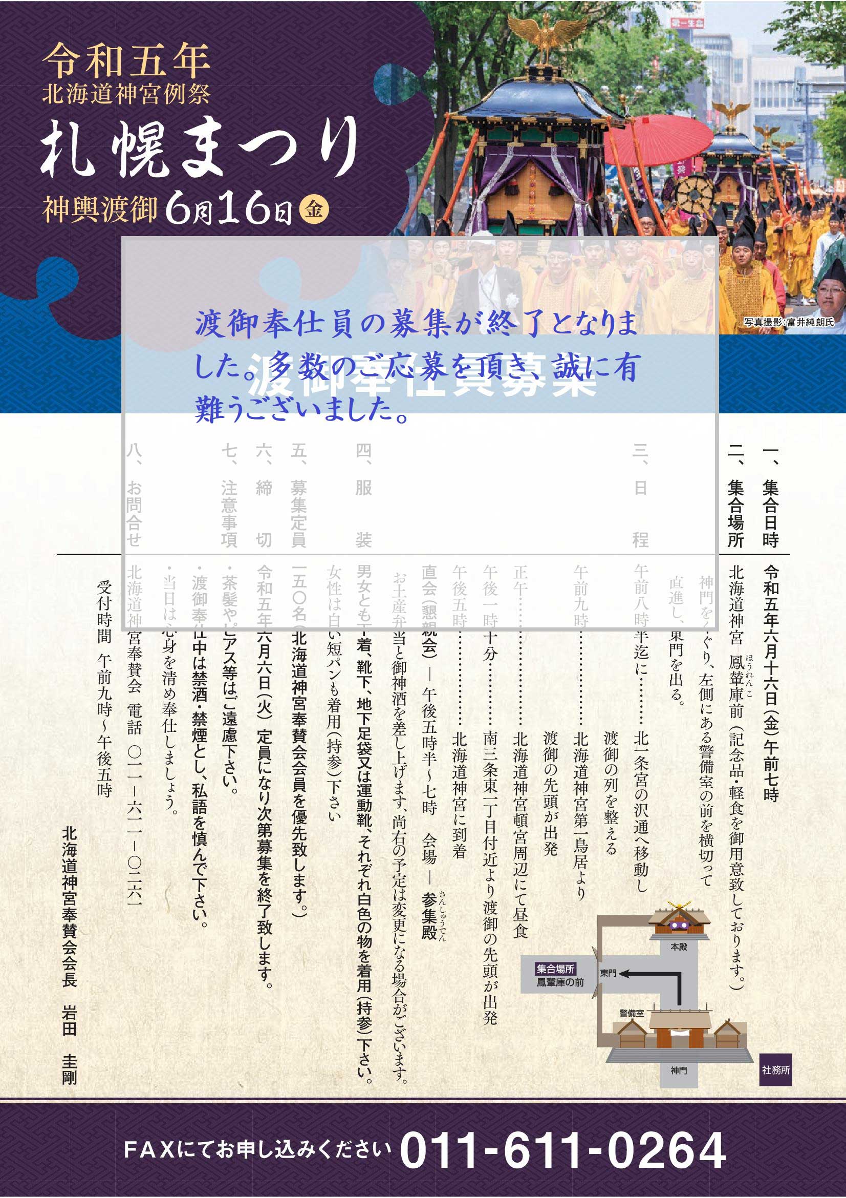 - 令和5年6月6日北海道神宮例祭渡御奉仕員募集の件(募集終了)