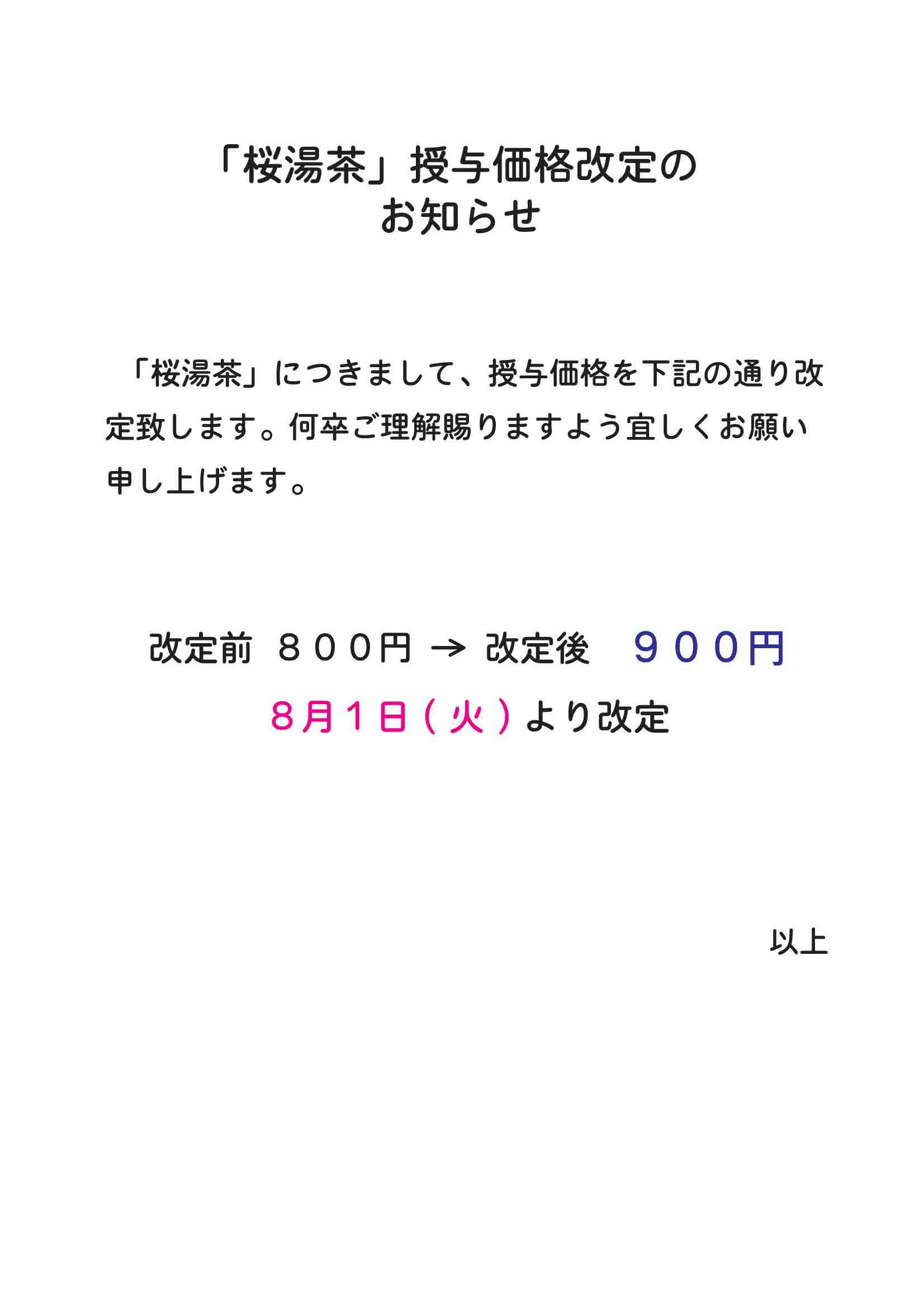 - 令和5年7月3日「桜湯茶」授与価格改定のお知らせ