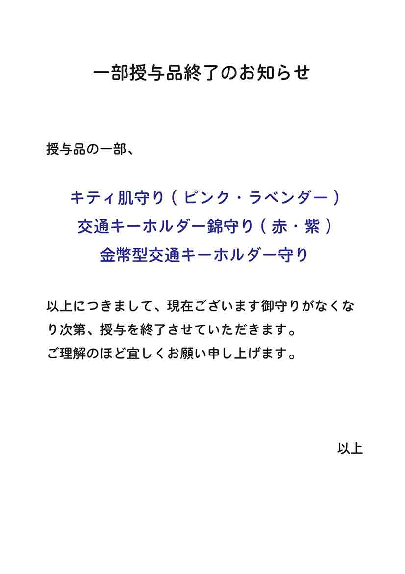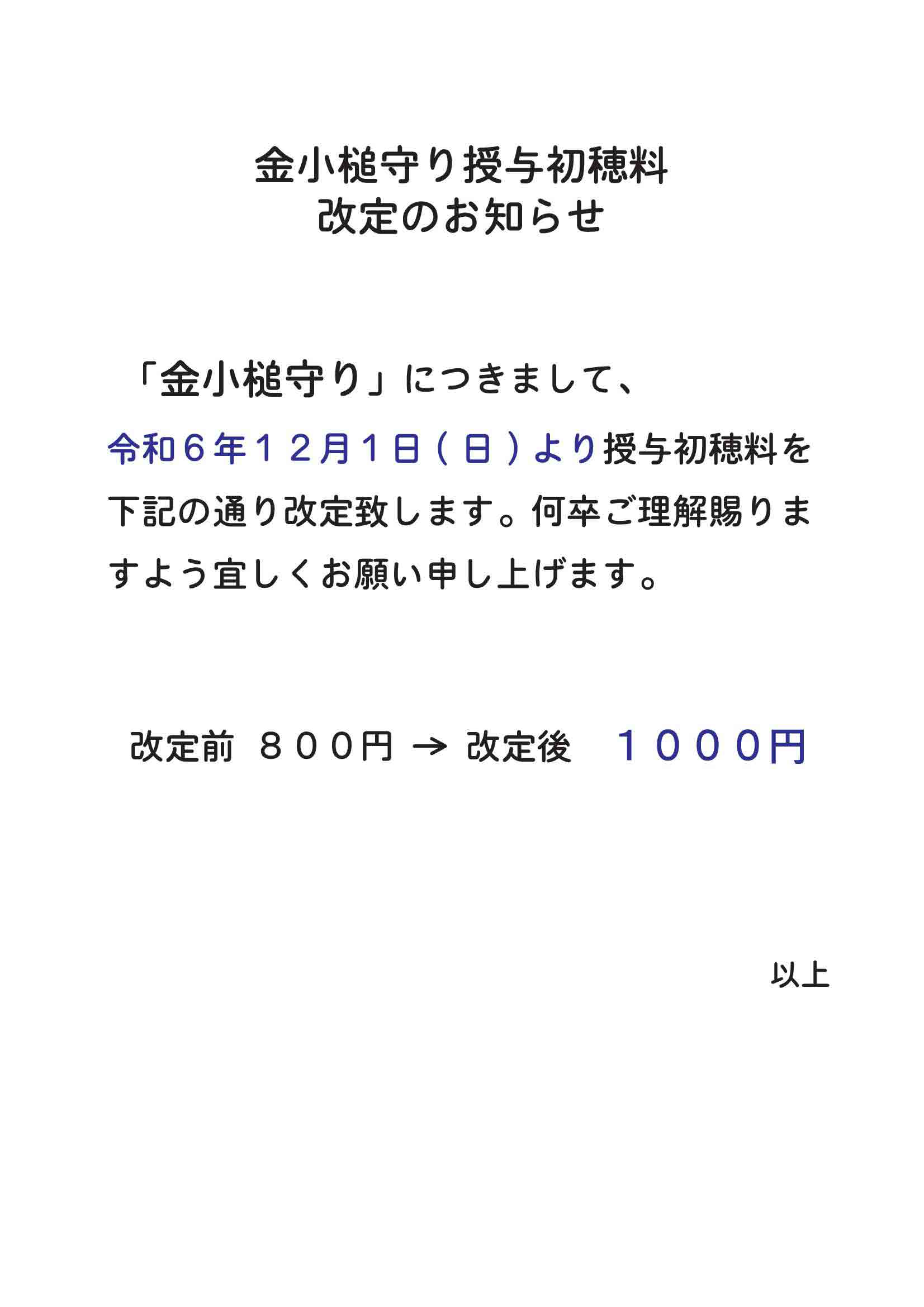 - 令和6年11月26日金小槌守り授与初穂料改定のお知らせ