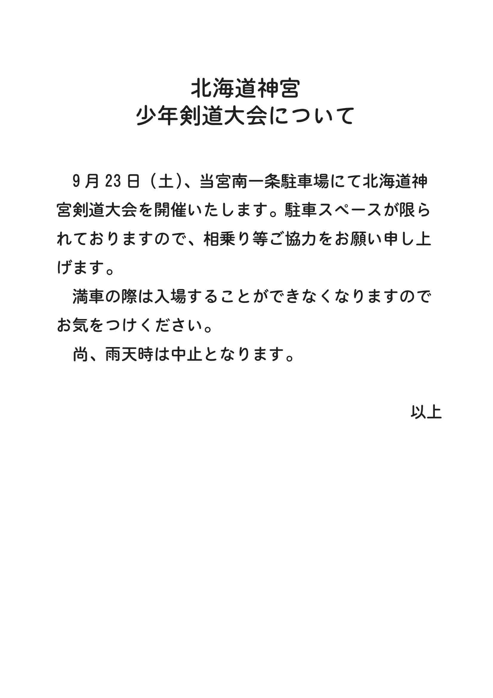 - 令和6年8月21日北海道神宮少年剣道大会について(9/23)
