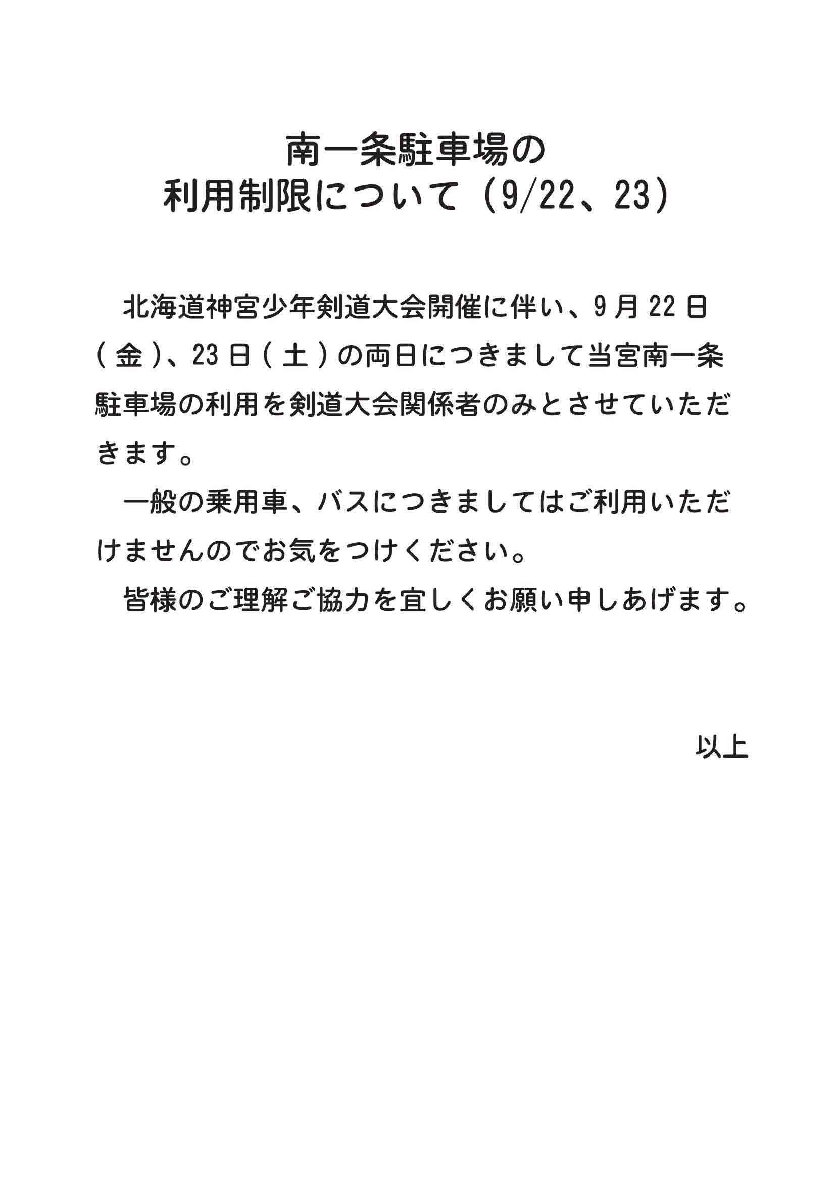 - 令和6年8月21日南一条駐車場の利用制限について(9/22-9/23)