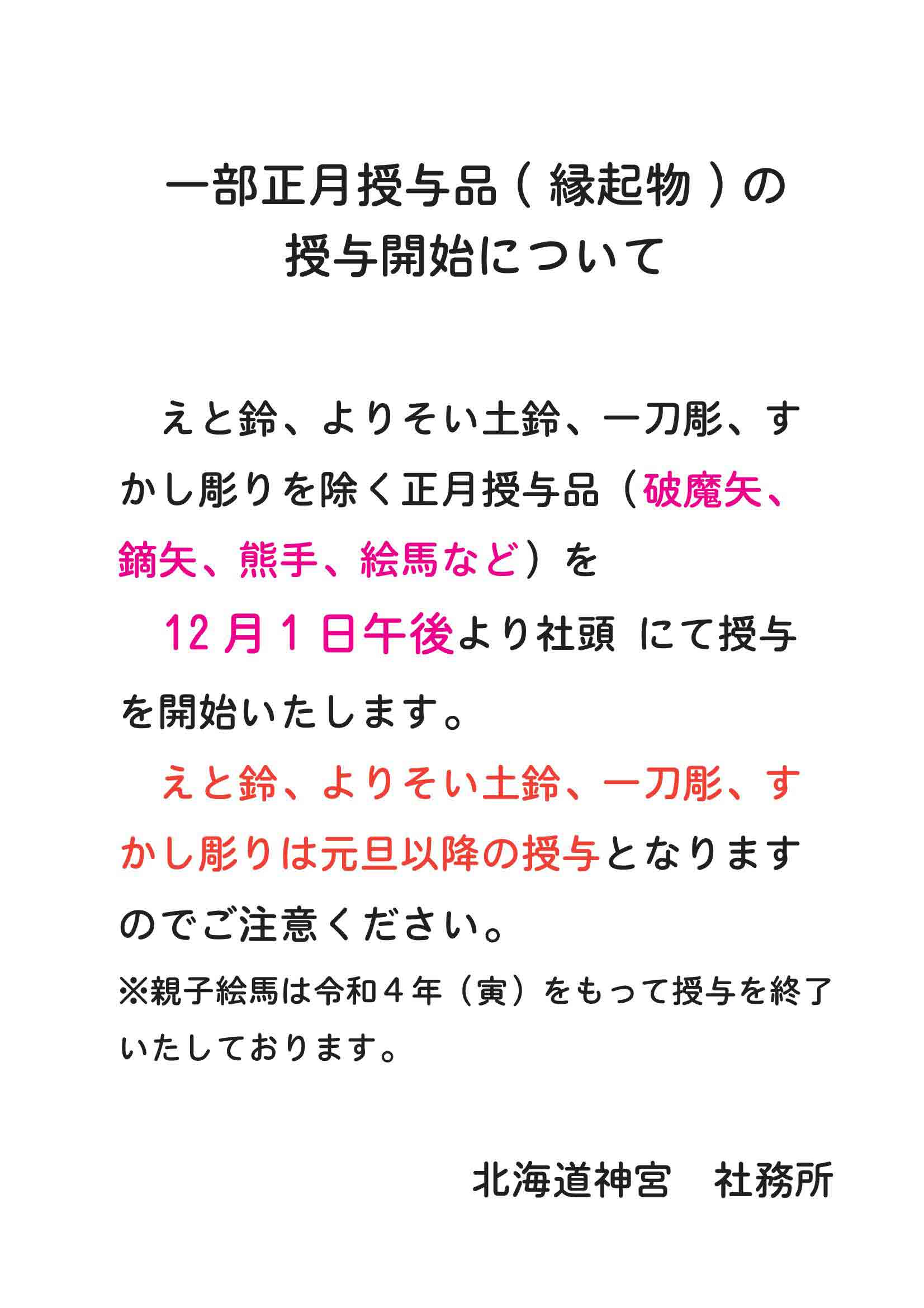 - 令和5年11月20日一部正月授与品(縁起物)の授与開始について