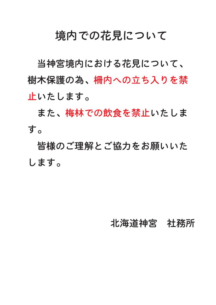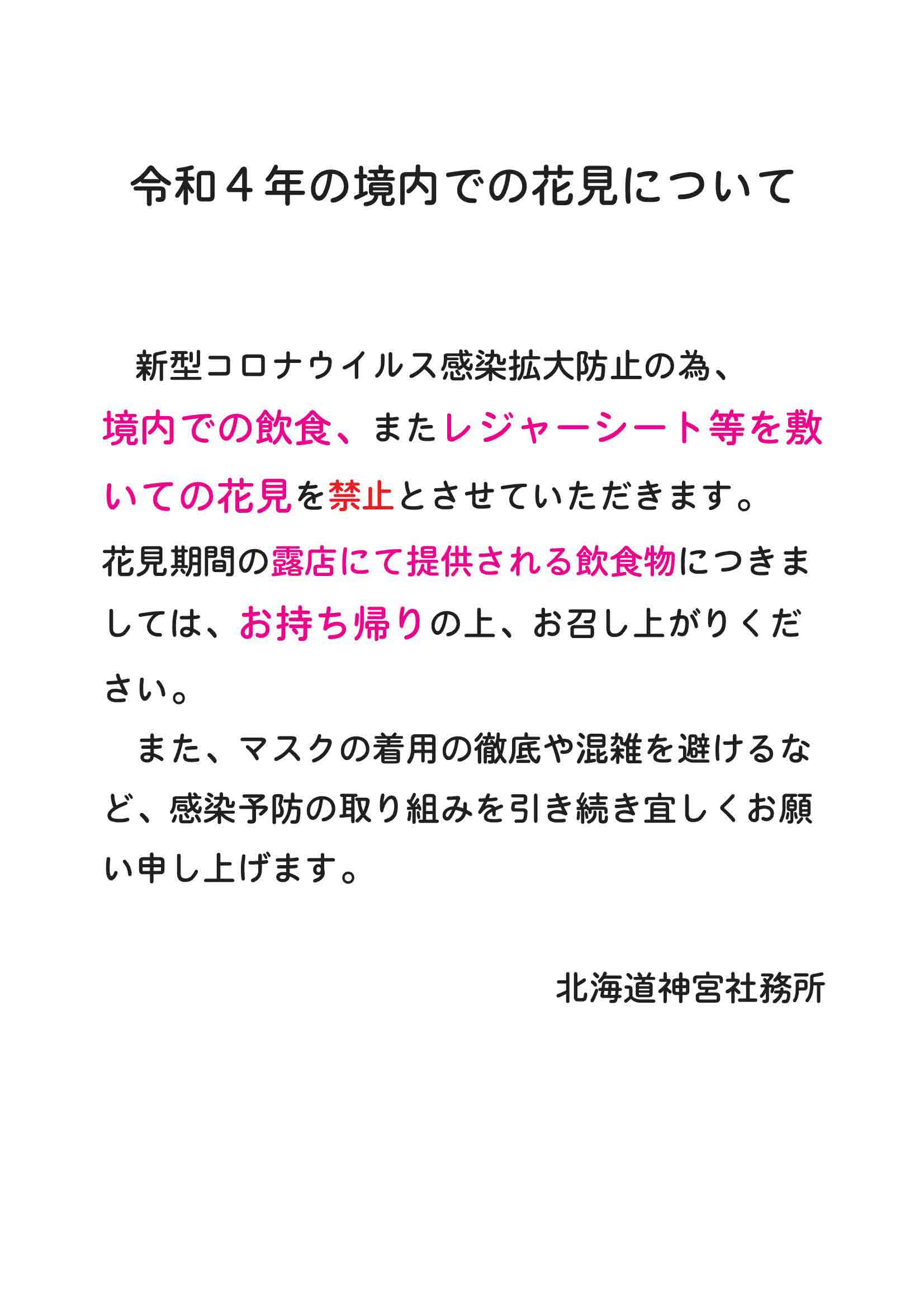 - 平成31年 北海道神宮花見期間とご利用について【4/27-5/6】