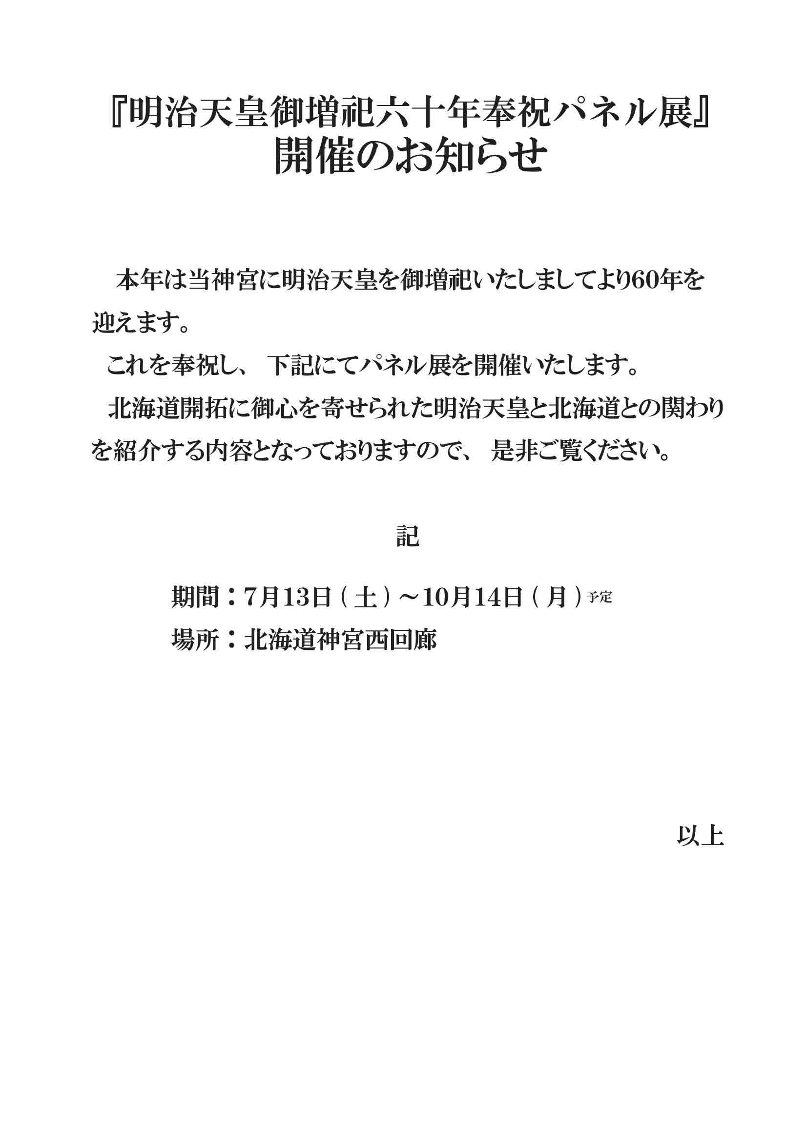 - 令和6年7月12日『明治天皇御増祀六十年奉祝パネル展』開催のお知らせ