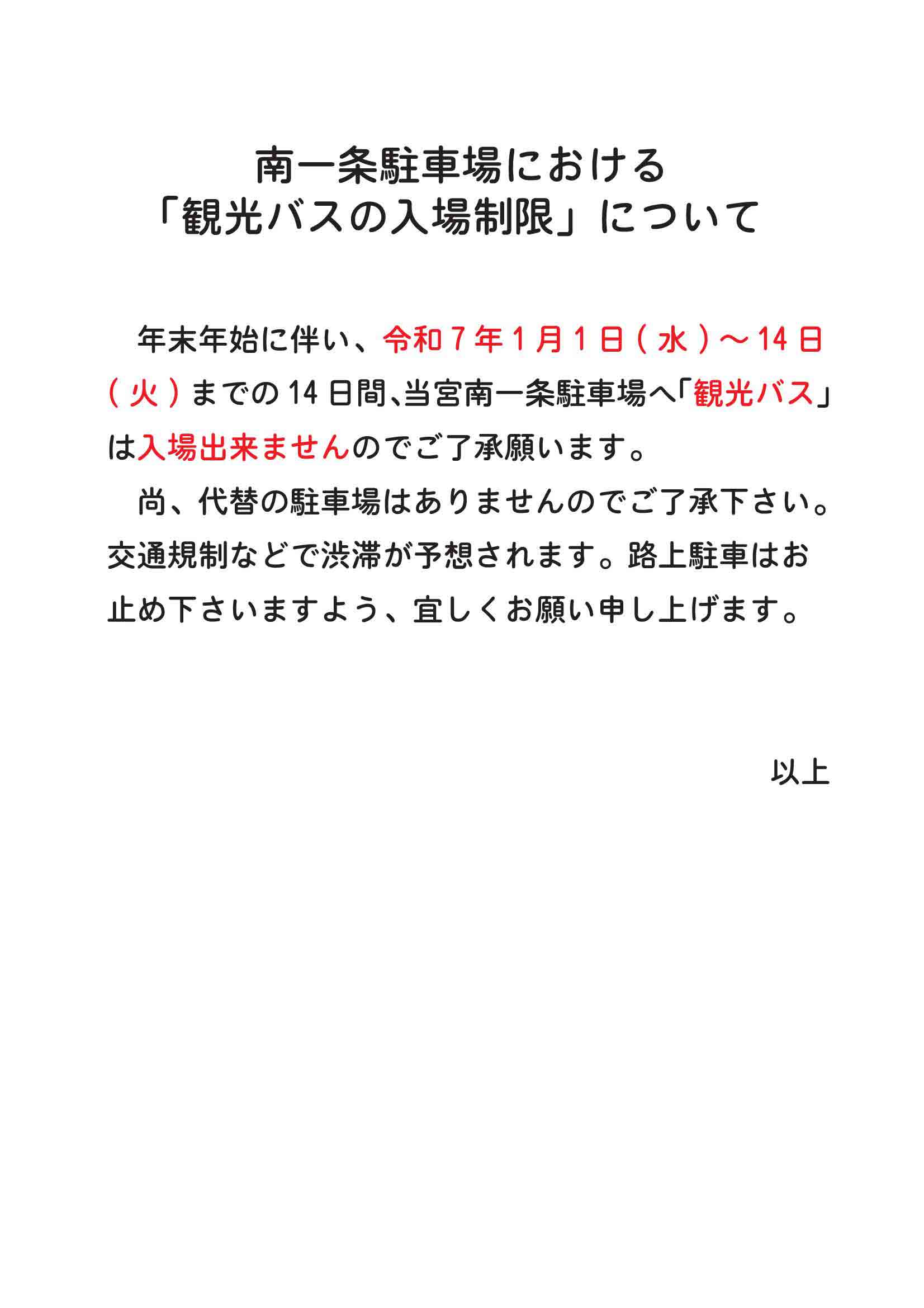 - 令和6年12月06日南一条駐車場における「観光バスの入場制限」について