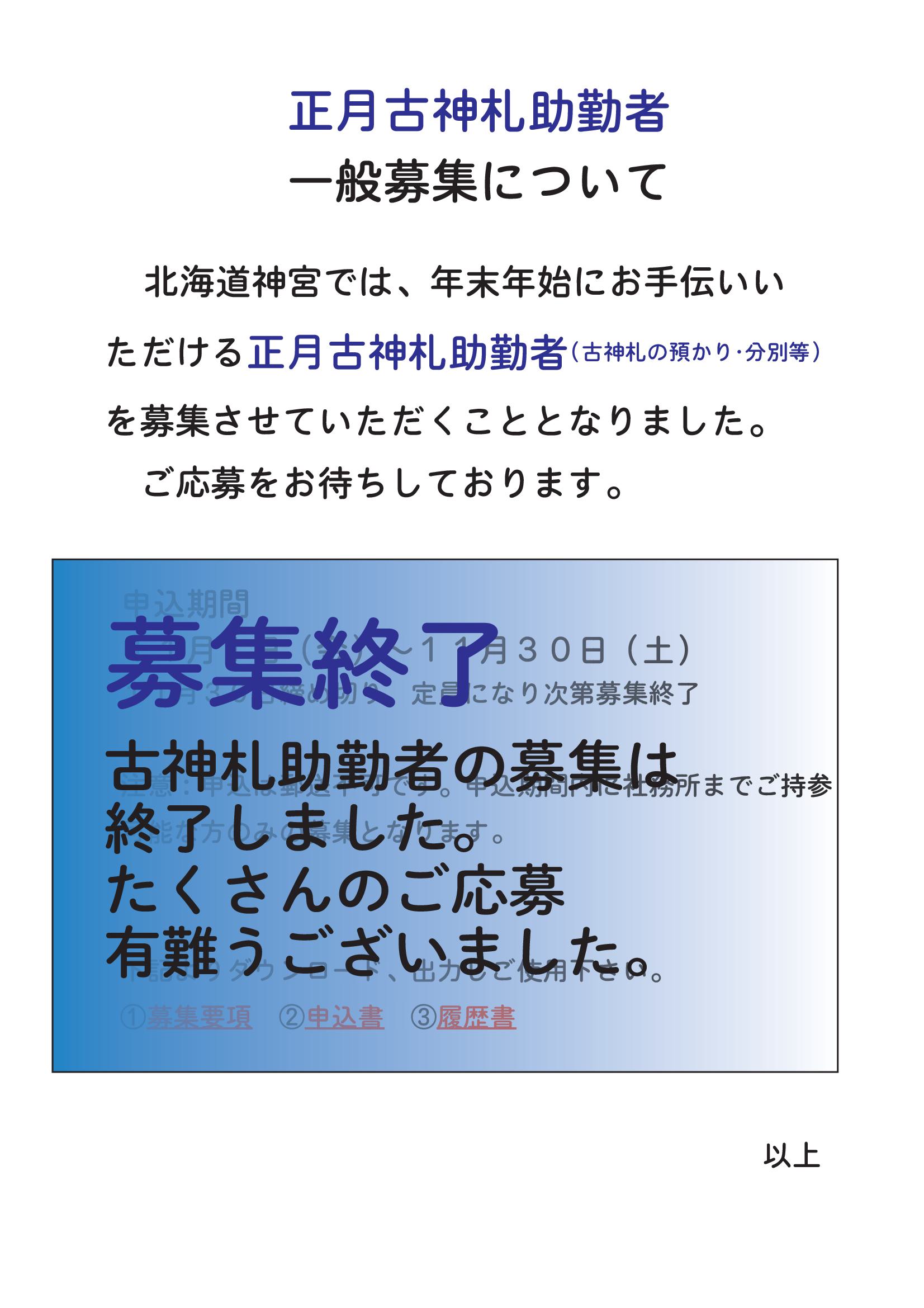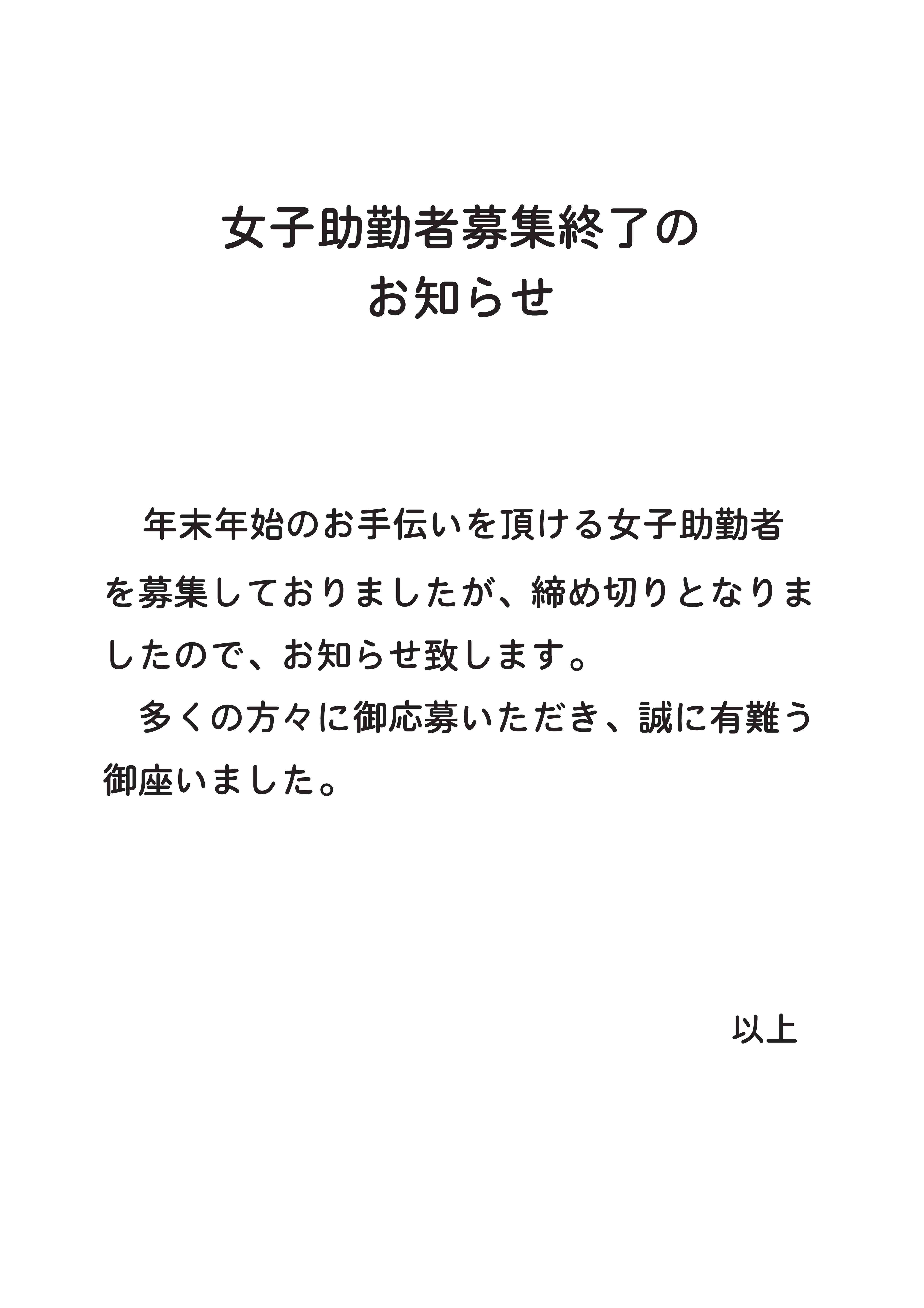- 令和2年11月30日正月女子助勤者一般募集について【募集終了】