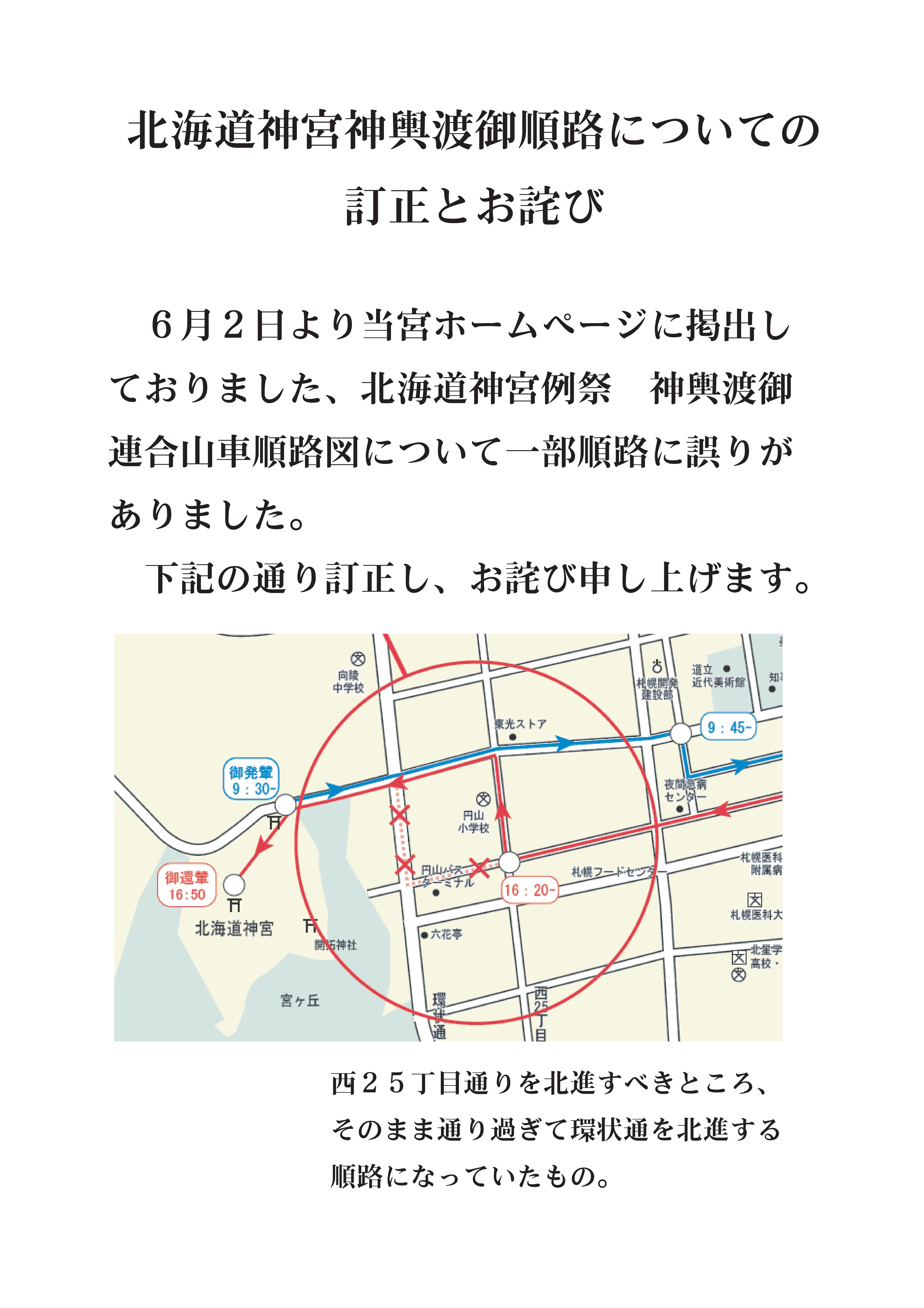 - 令和7年6月11日北海道神宮例祭神輿渡御交通規制のお知らせについての訂正とお詫び