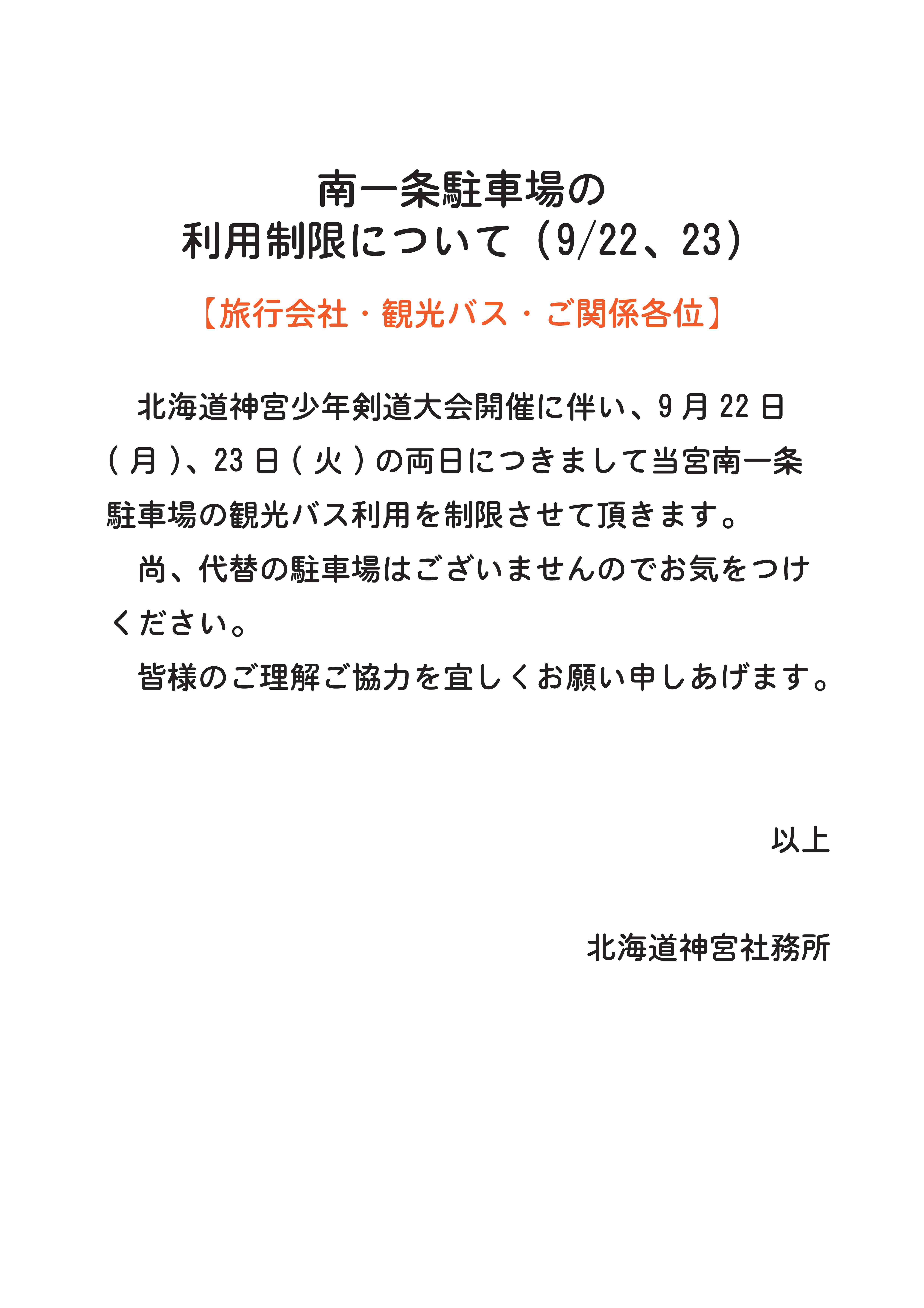 - 令和7年8月4日南一条駐車場の利用制限について(9/22.23)【旅行会社・観光バス・ご関係各社さま向け】