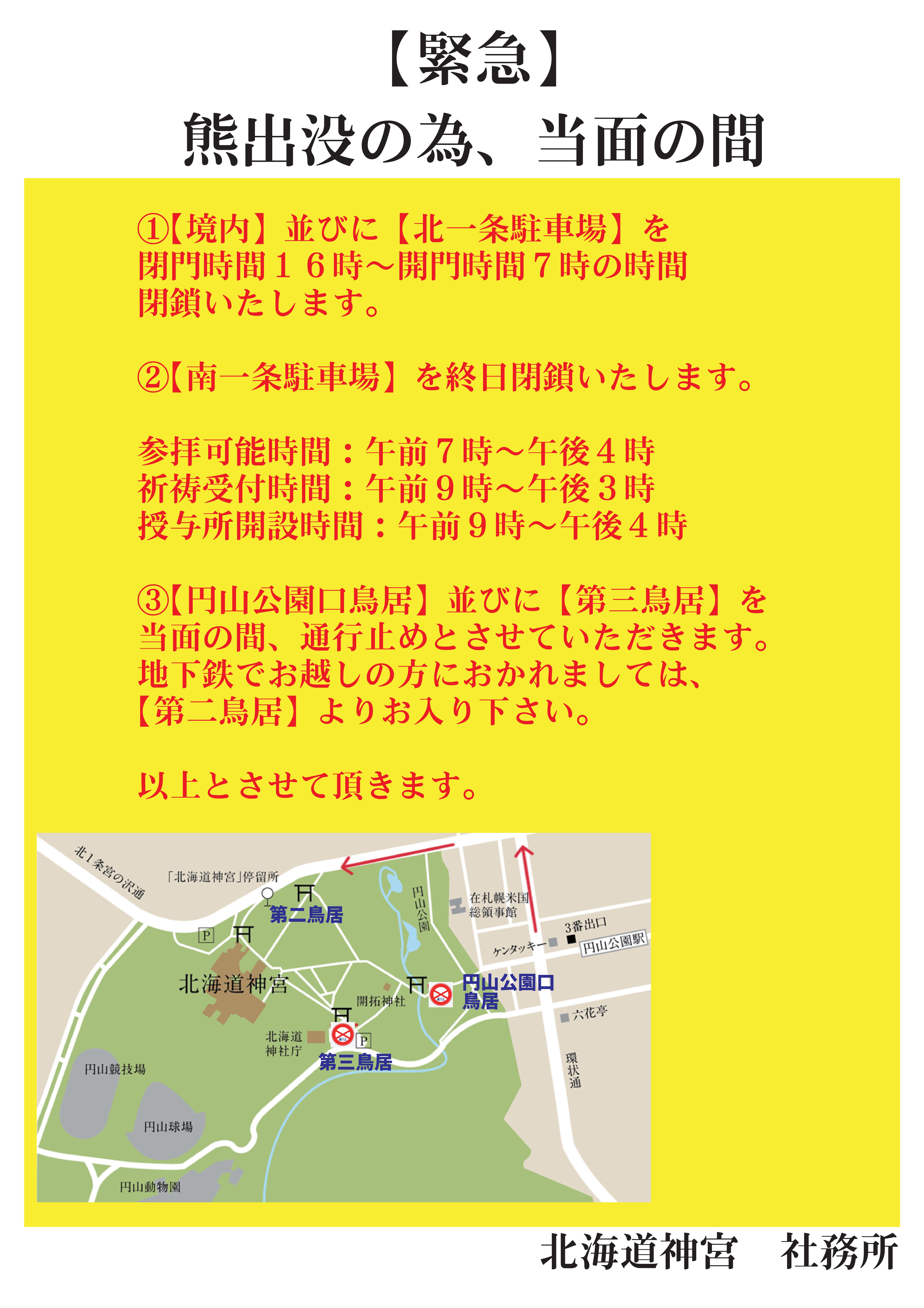 - 令和7年11月10日【緊急】境内における『熊出没』による緊急対応について