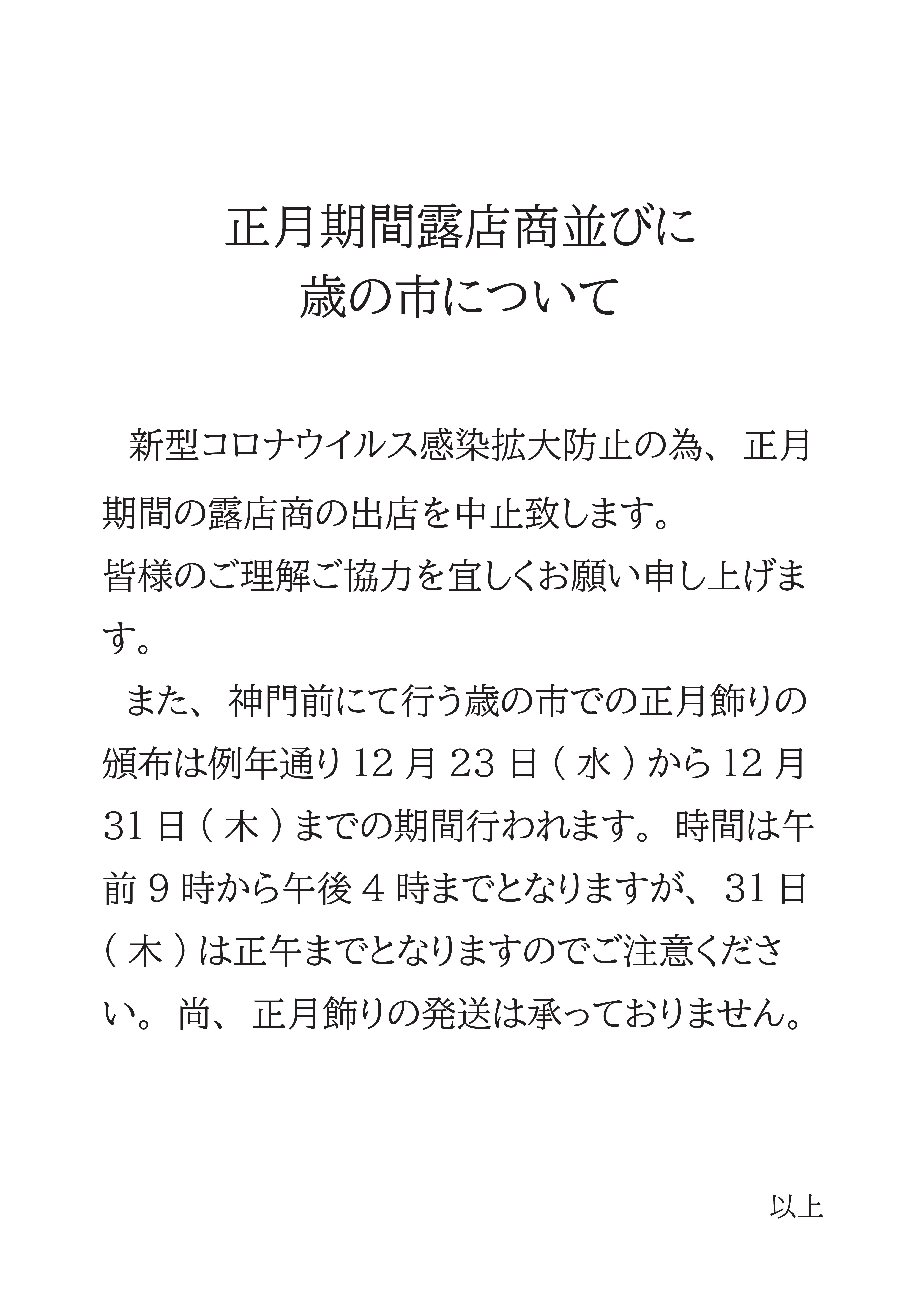 - 令和5年12月25日令和6年正月期間のご参拝等に関するお知らせ