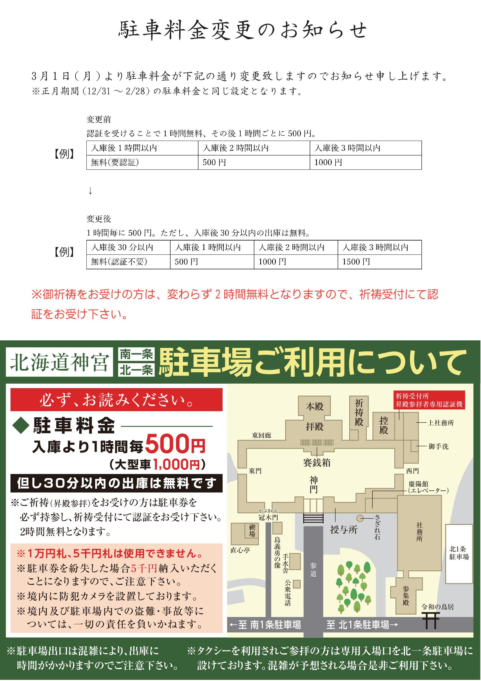 - 令和3年2月18日駐車料金変更のお知らせ【3月1日より】