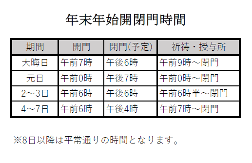 - 令和5年12月28日年末年始開閉門時間のお知らせ