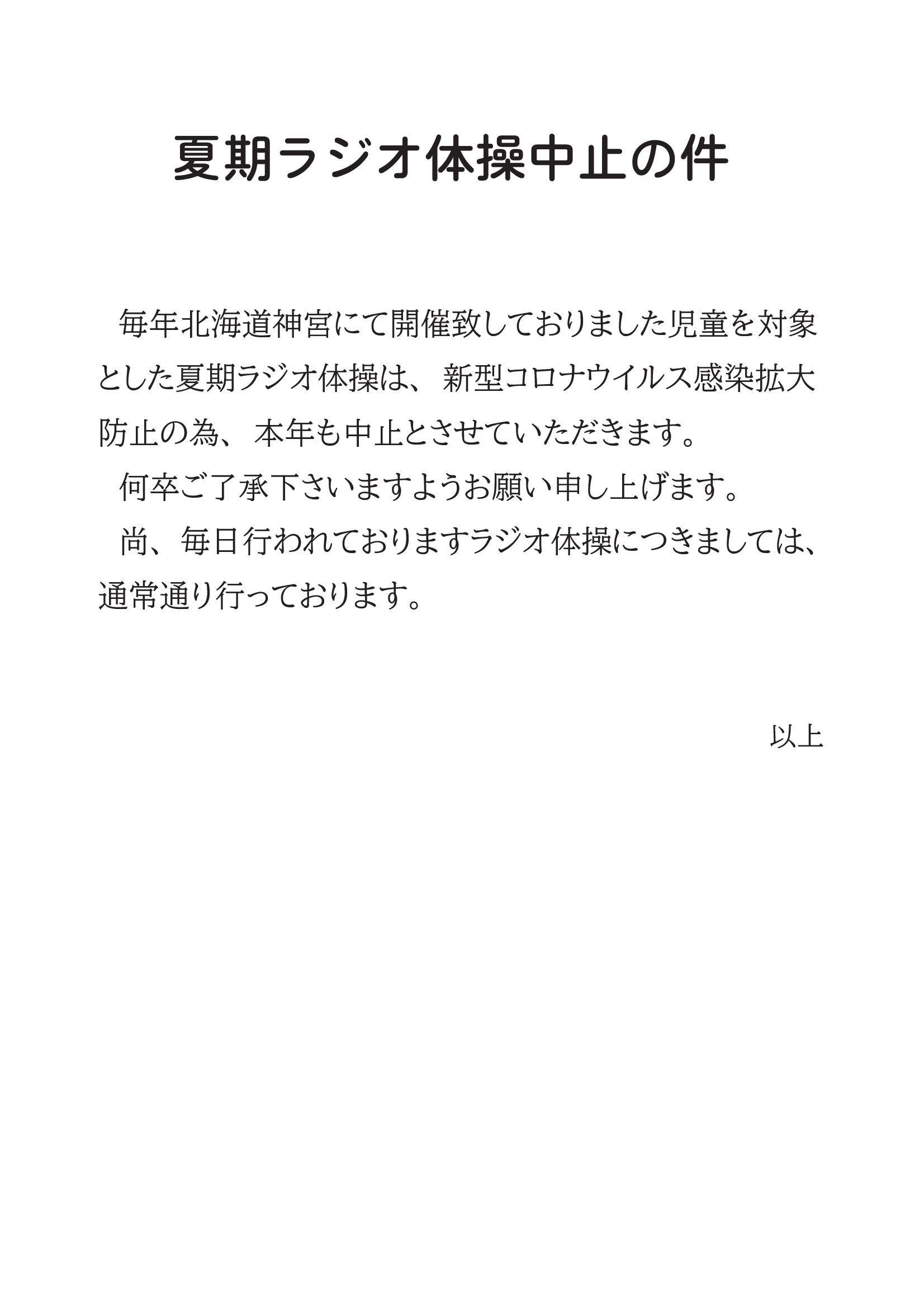 - 令和2年7月15日夏季ラジオ体操中止のお知らせ