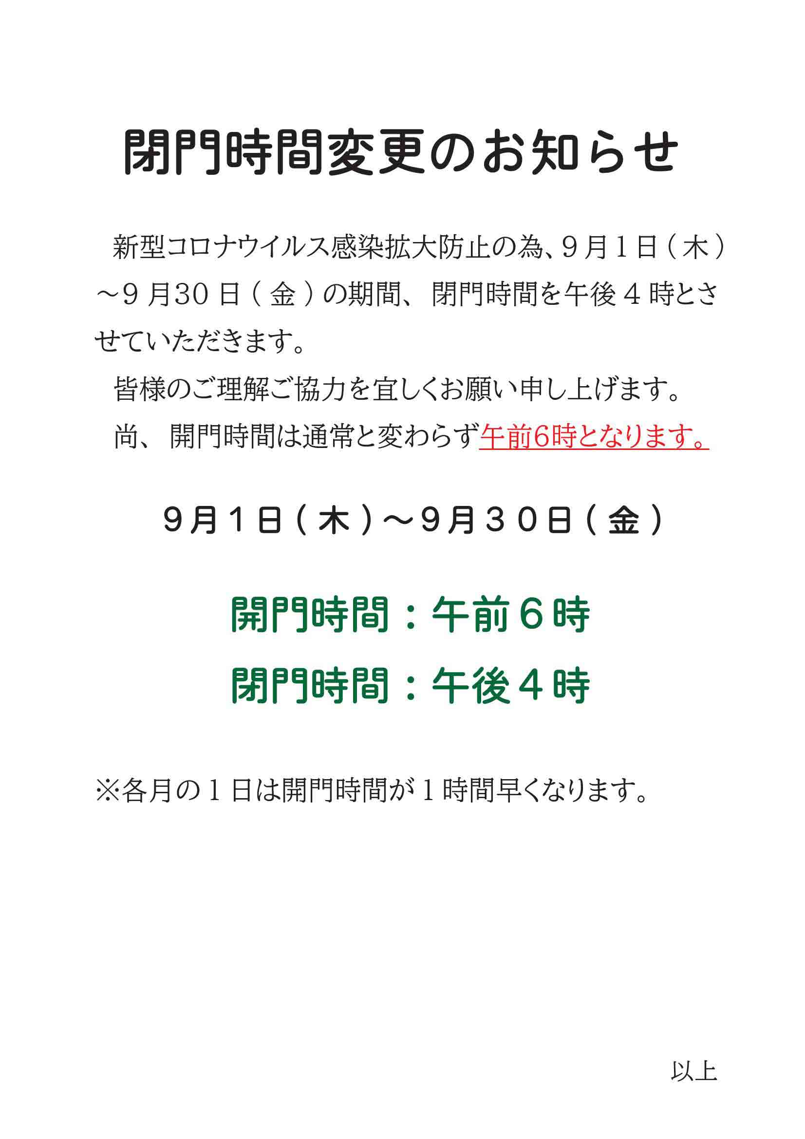 - 令和5年4月3日各月一日の開門時間変更のお知らせ