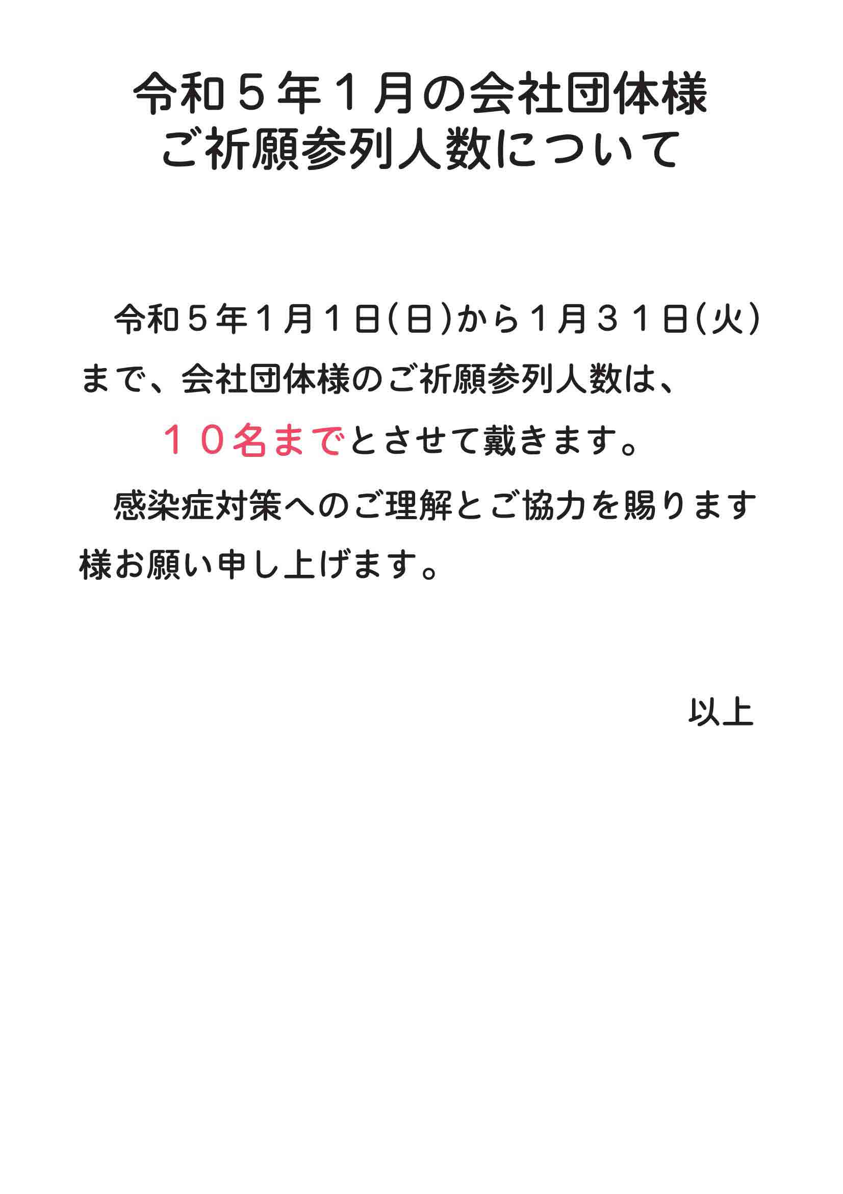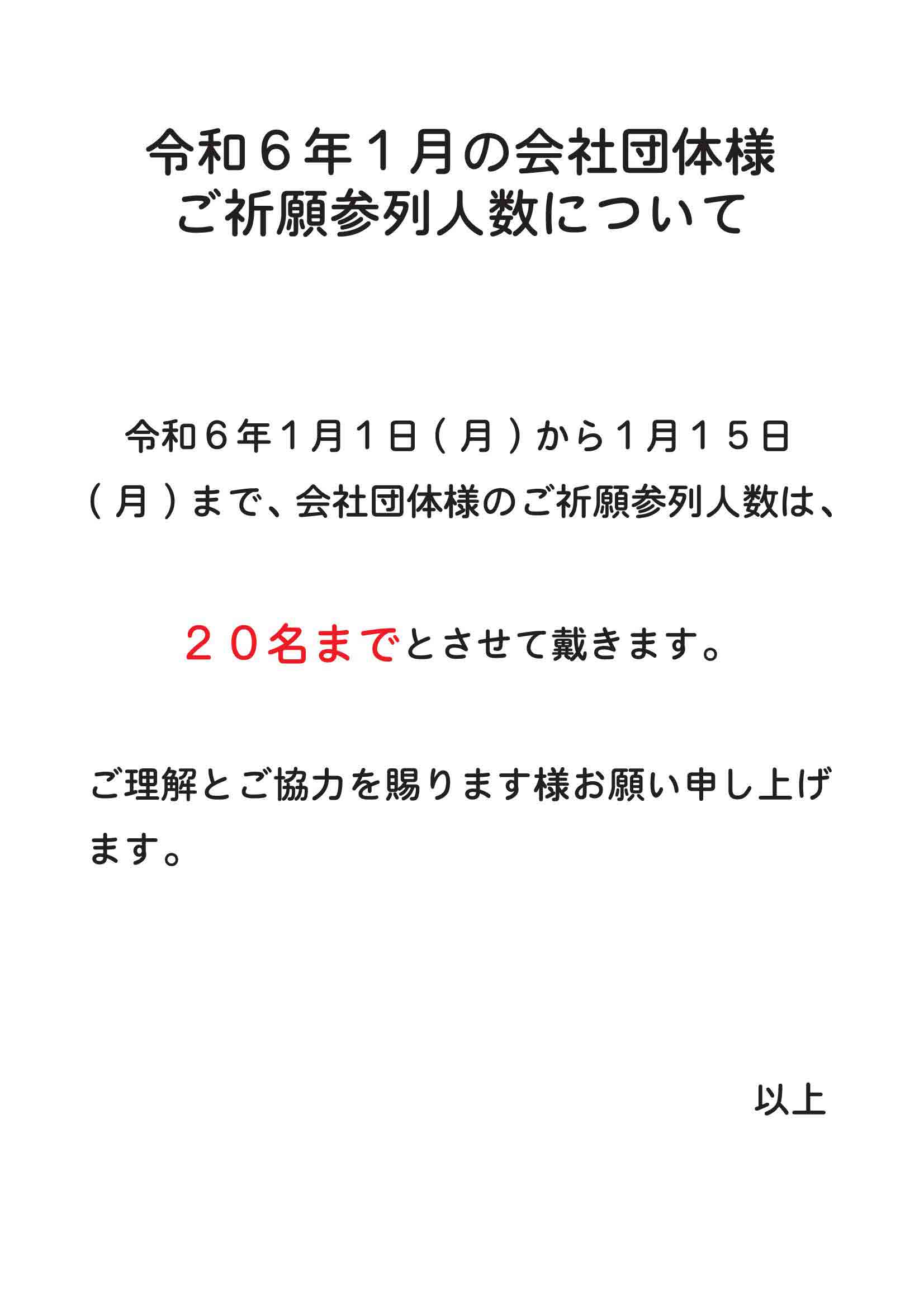 - 令和5年11月8日令和6年1月の会社団体様の御祈願参列人数について