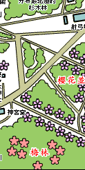 | 神宮內的櫻花,是從明治8 (1875)年時,福玉仙吉為了撫慰島義勇的亡靈,而在參道兩旁種植而開始的。目前有蝦夷山櫻、染井吉野櫻、八重櫻等約1400株左右,為札幌市民賞櫻的名勝地。在開花季節的5月,有眾多的參拜者前來,相當熱鬧。 |