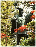 Bronze statue of the head commissioner, Mr. Shima, who brought the gods on his